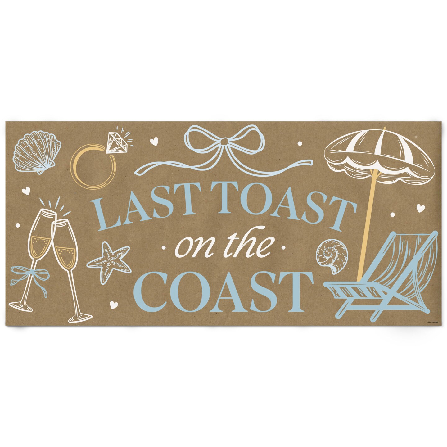 Big Dot of Happiness Last Toast on the Coast Kraft Paper Banner, Beach Bridal Blue Coastal Bachelorette Banner, Printed Brown Paper Sign Decor – 1 Ct
