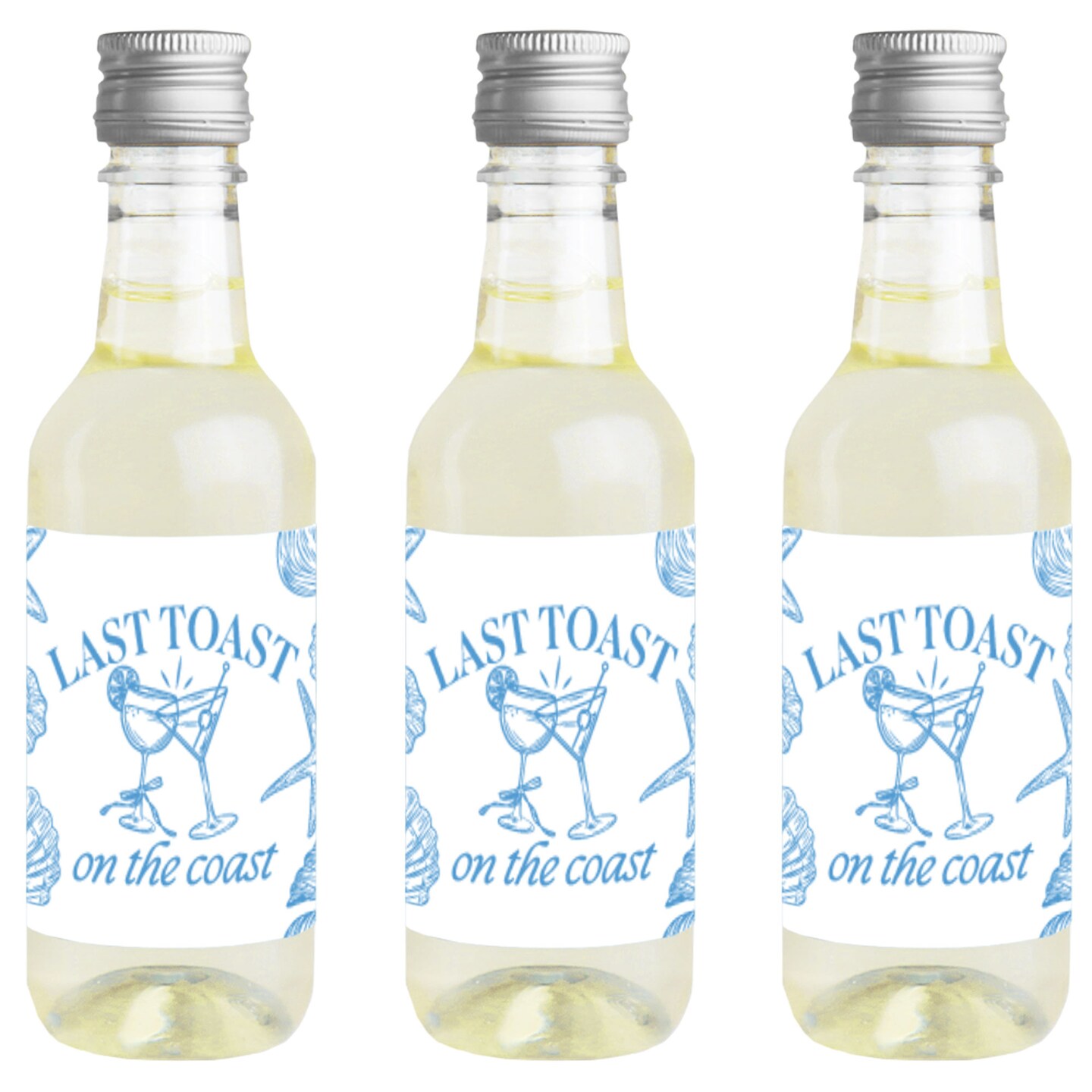 Big Dot of Happiness Last Toast on the Coast Mini Wine and Champagne Bottle Label Stickers, Beach Bachelorette Party Favor Gift - Set of 16
