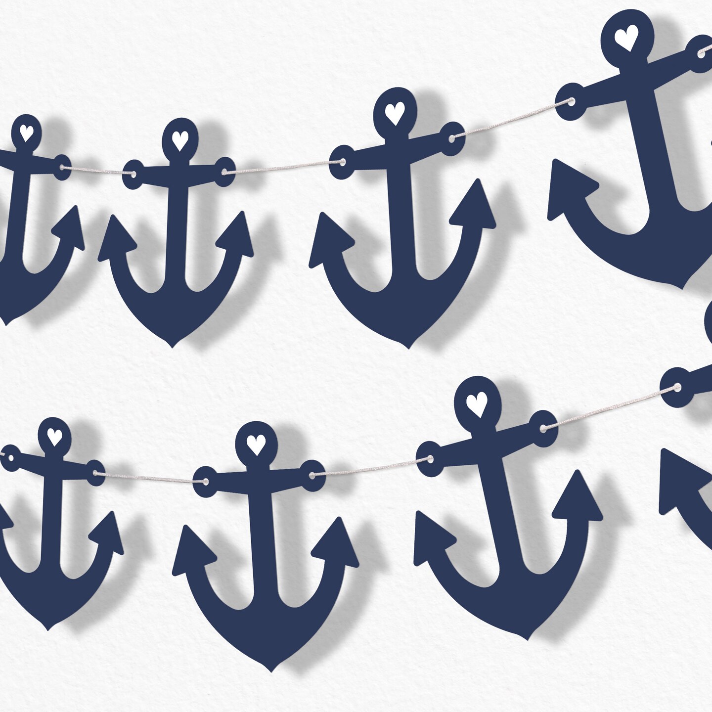 Big Dot of Happiness Let's Get Nauti Garland Banner, Beach Bridal and Nautical Bachelorette Backdrop, 30 Feet of Cord, 15 Double-Sided Navy Anchors