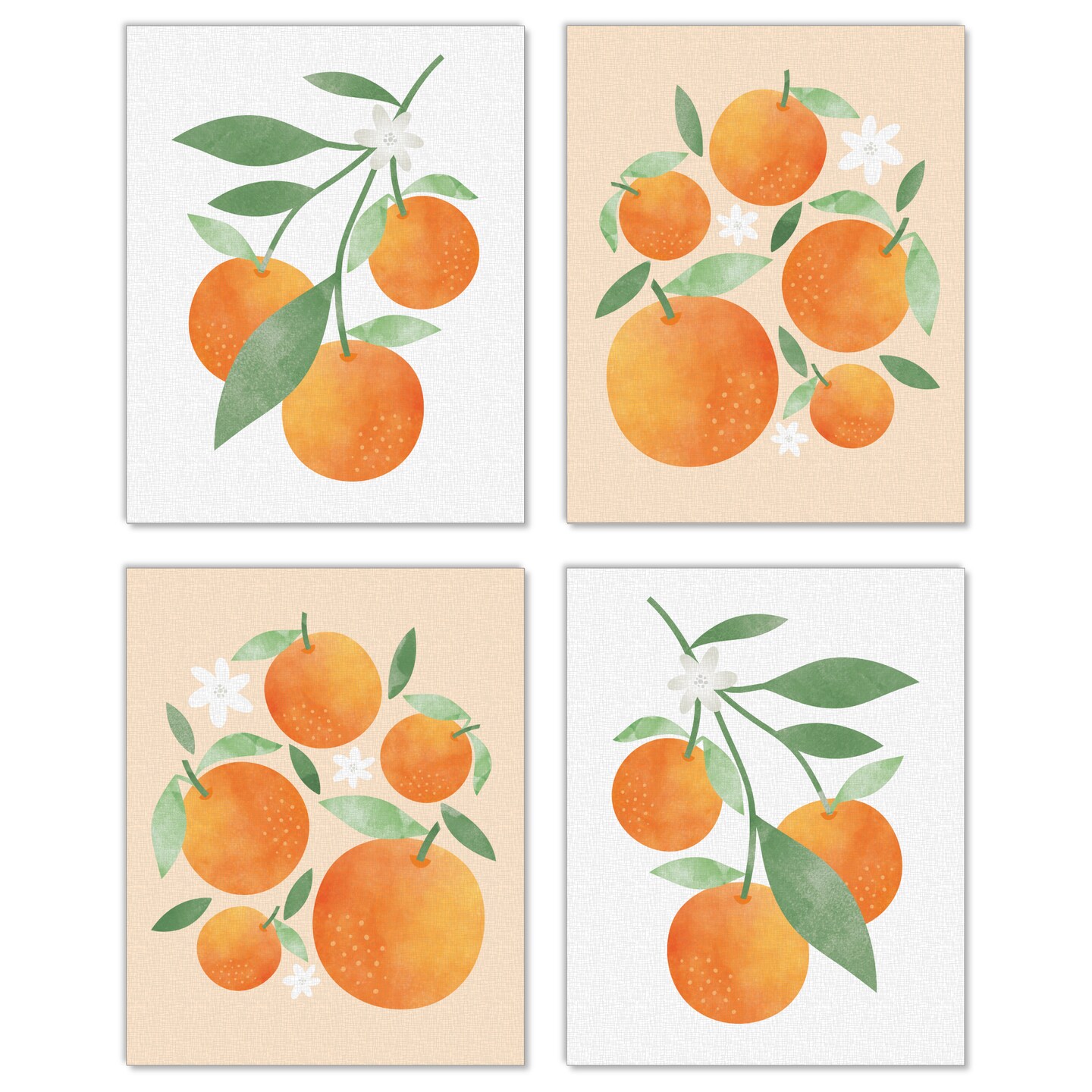 Big Dot of Happiness Little Cutie Clementine - Unframed Orange Citrus Kitchen Linen Paper Wall Art - Set of 4 - Artisms - 8 x 10 inches