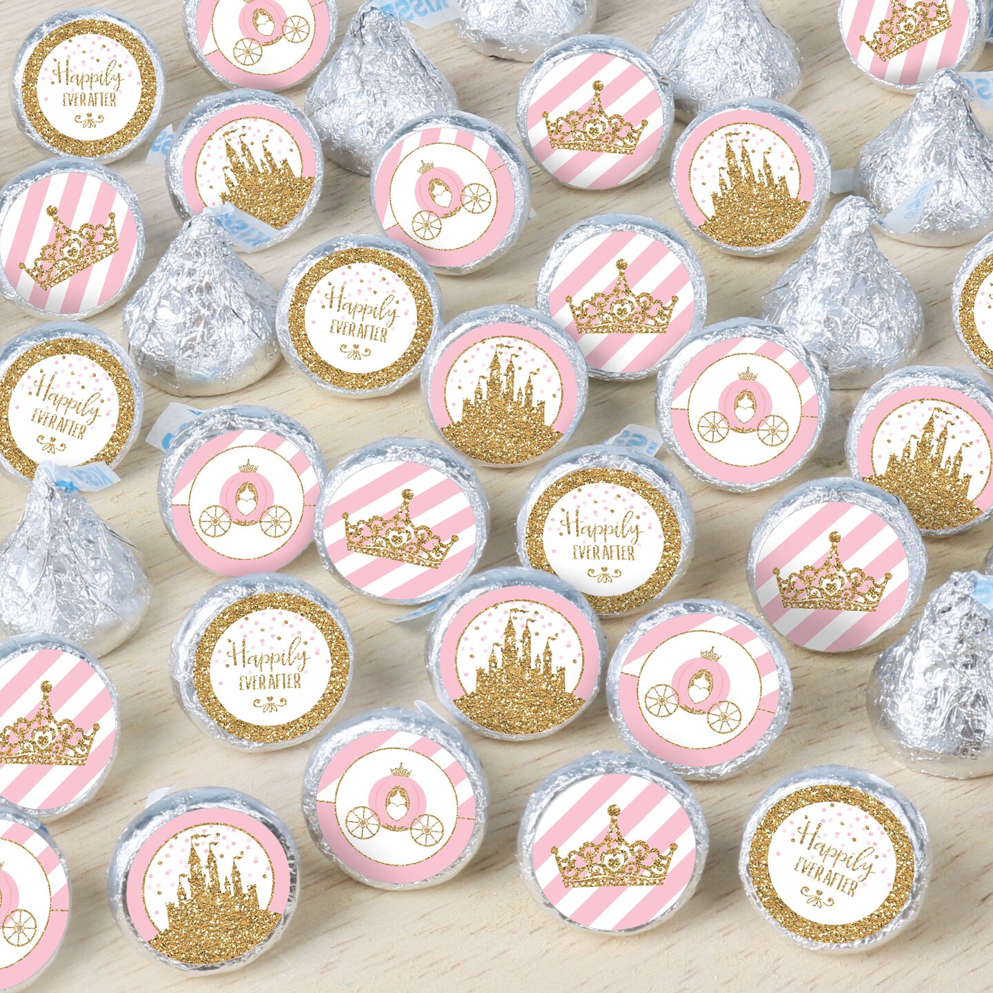 Big Dot of Happiness Little Princess Crown - Pink and Gold Baby Shower or Birthday Party Small Round Candy Stickers - Party Favor Labels - 324 Count