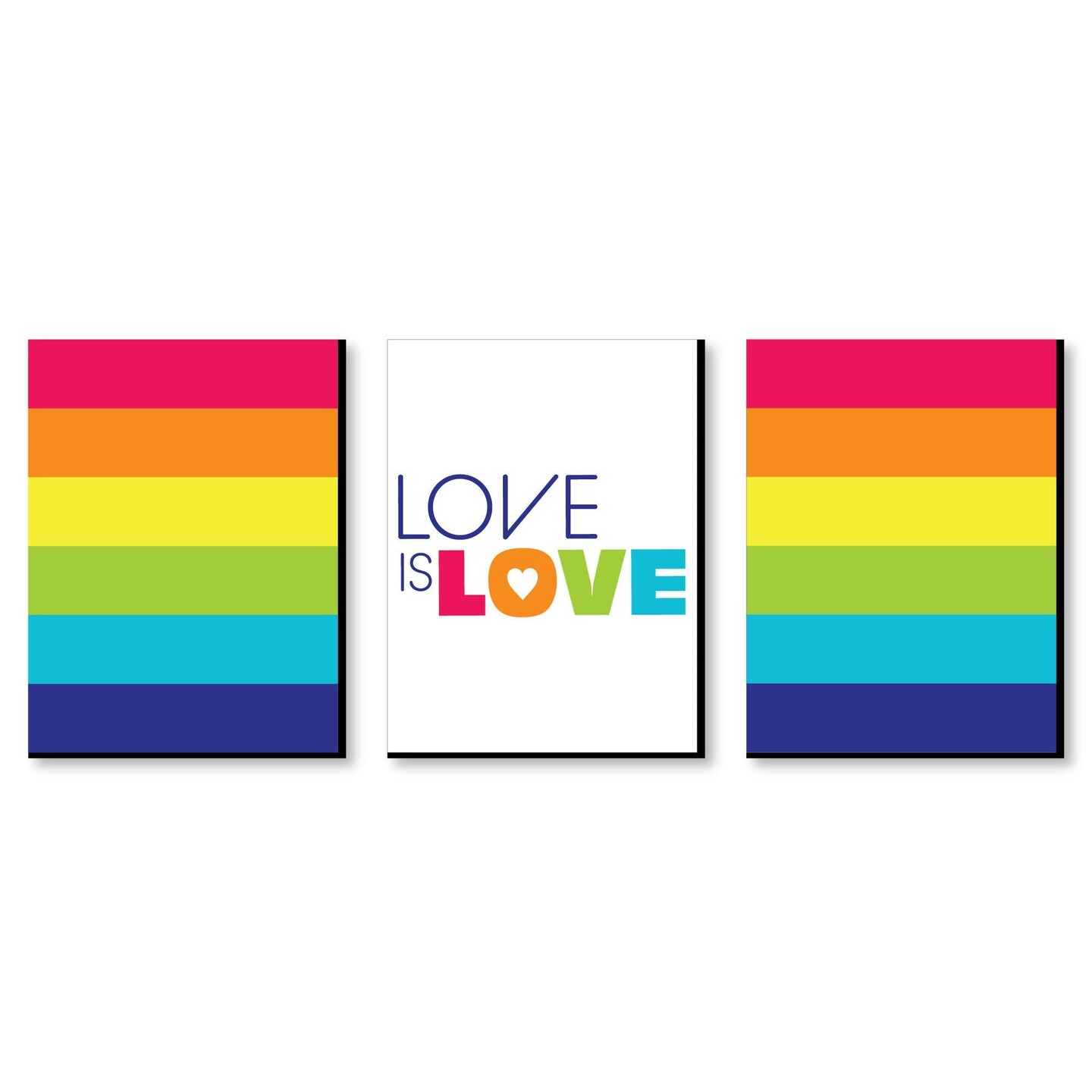 Big Dot of Happiness Love is Love - Pride - Wall Art and Rainbow Room Decor - 7.5 x 10 inches - Set of 3 Prints