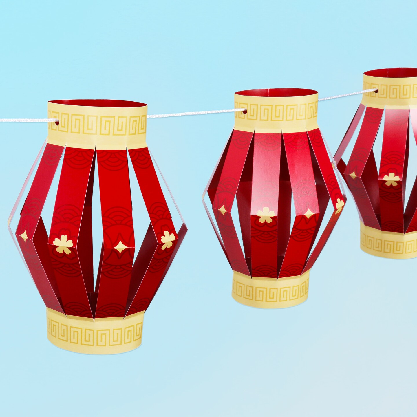 Big Dot of Happiness Lunar New Year 3D Hanging Paper Lanterns Banner Kit 12 Ct Red and Gold Party Decorations DIY Craft Set with 30 Feet of Cord
