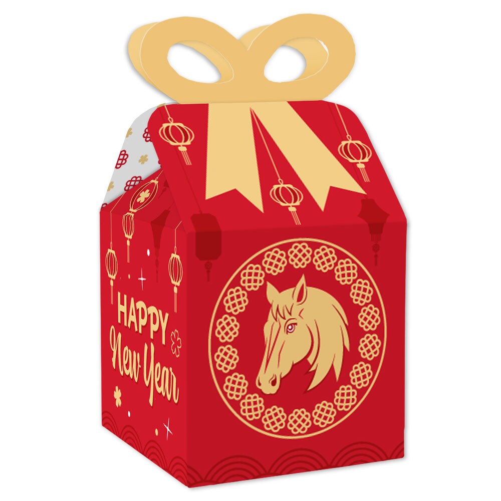 Big Dot of Happiness Lunar New Year - Square Favor Gift Boxes - 2026 Year of the Horse Bow Boxes - Set of 12