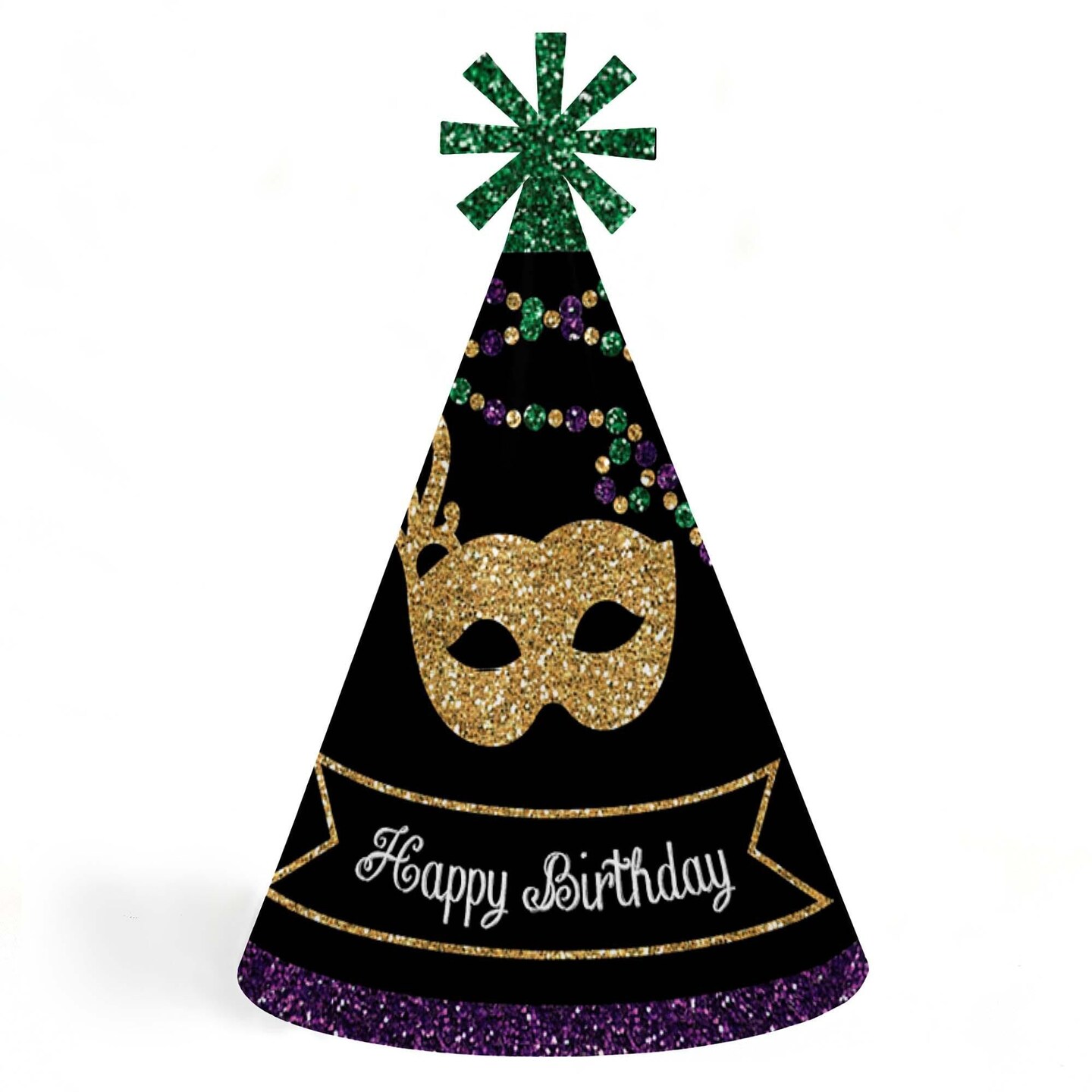 Big Dot of Happiness Mardi Gras - Cone Happy Birthday Party Hats for Kids and Adults - Set of 8 (Standard Size)
