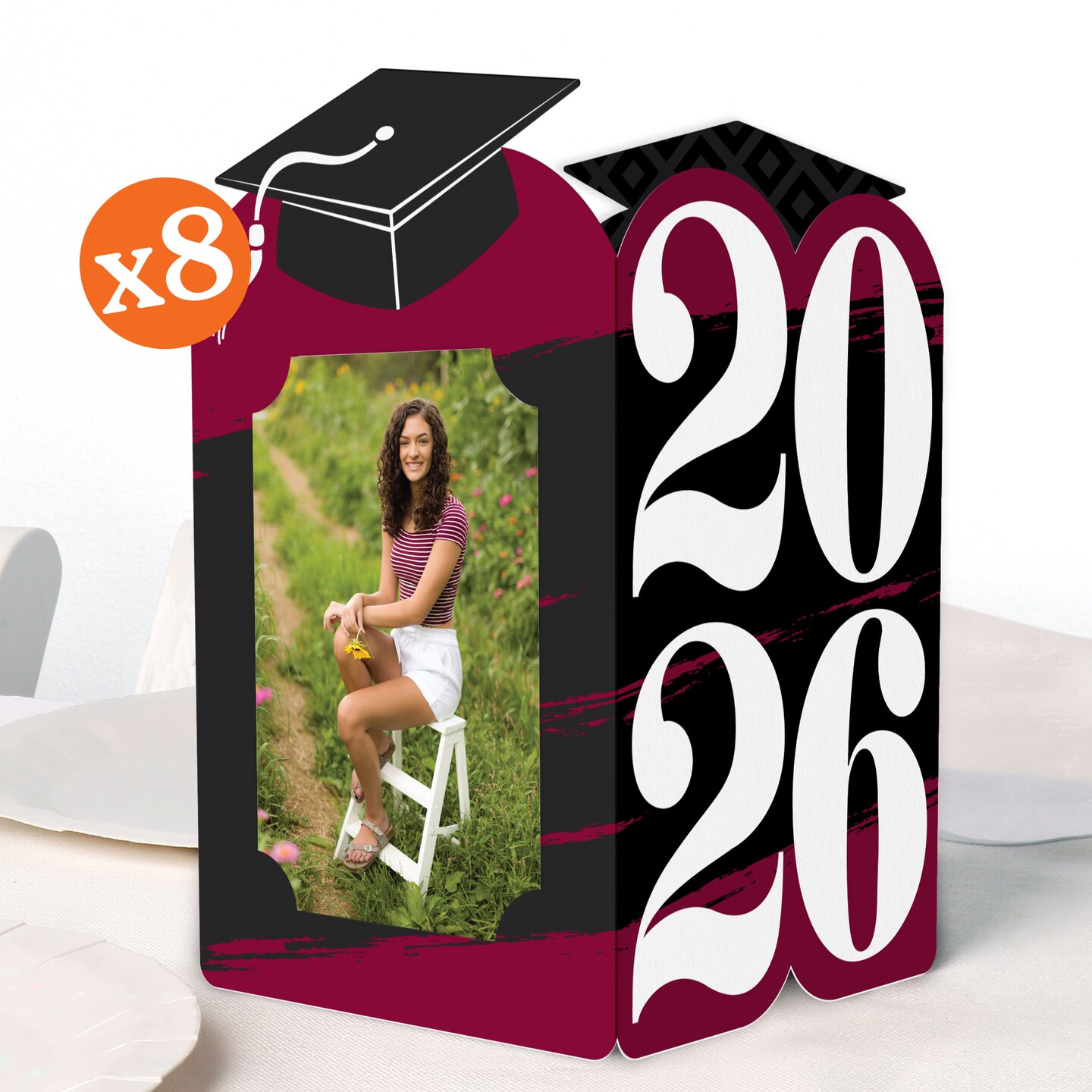 Big Dot of Happiness Maroon 2026 Graduation Photo Holder Centerpieces, 4x6 Picture Display Box, Table Decoration Centerpiece for Burgundy Grad Party Decor, 8 Count