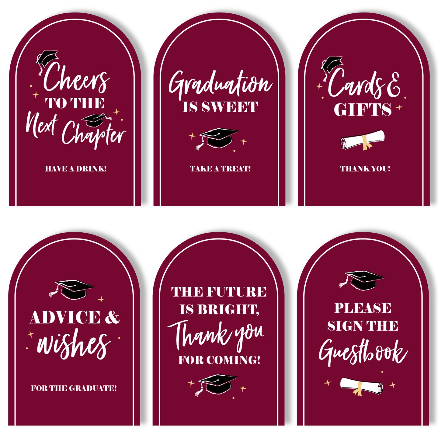 Big Dot of Happiness Maroon Graduation Party Signs with Stand Set, Table Sign Bundle Food, Drinks, Cards Gifts, Guestbook, Advice Wishes, Favors, 6 Ct