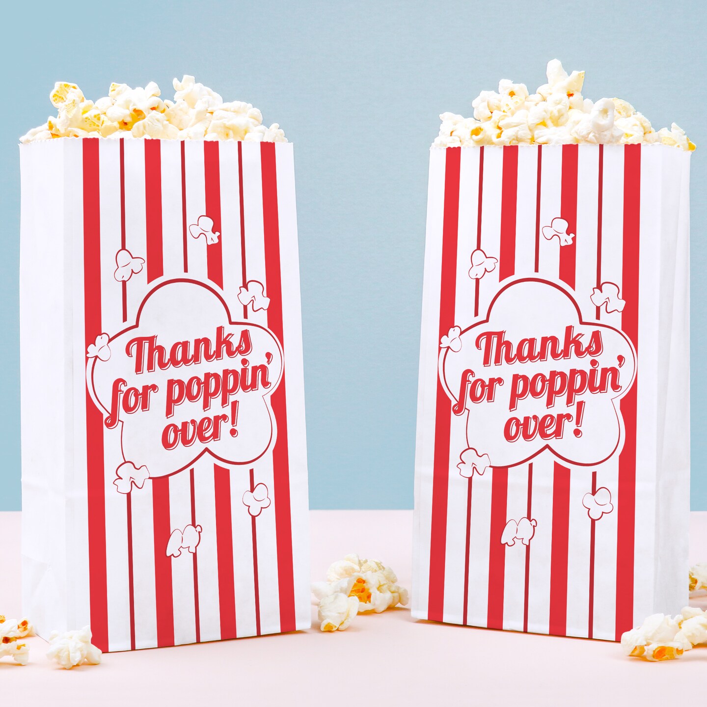 Big Dot of Happiness Movie Night Thanks for Popping Over Popcorn Bags, Party Favor Snack Treats, Free-Standing Individual White Paper Bags - 25 Count