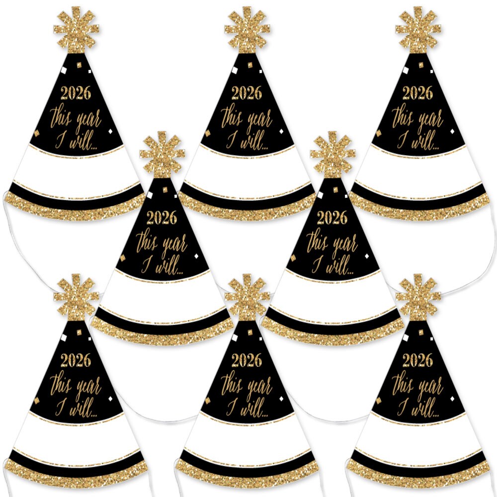 Big Dot of Happiness New Year's Eve - Gold - Mini Cone 2026 New Years Eve Resolution Party Hats - Small Little Party Hats - Set of 8