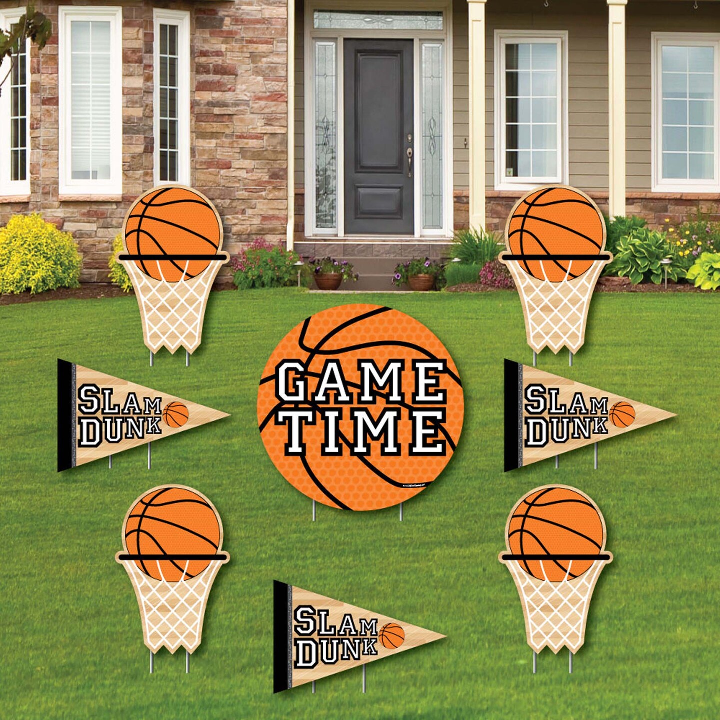 Big Dot of Happiness Nothin' but Net - Basketball - Yard Sign and Outdoor Lawn Decorations - Baby Shower or Birthday Party Yard Signs - Set of 8
