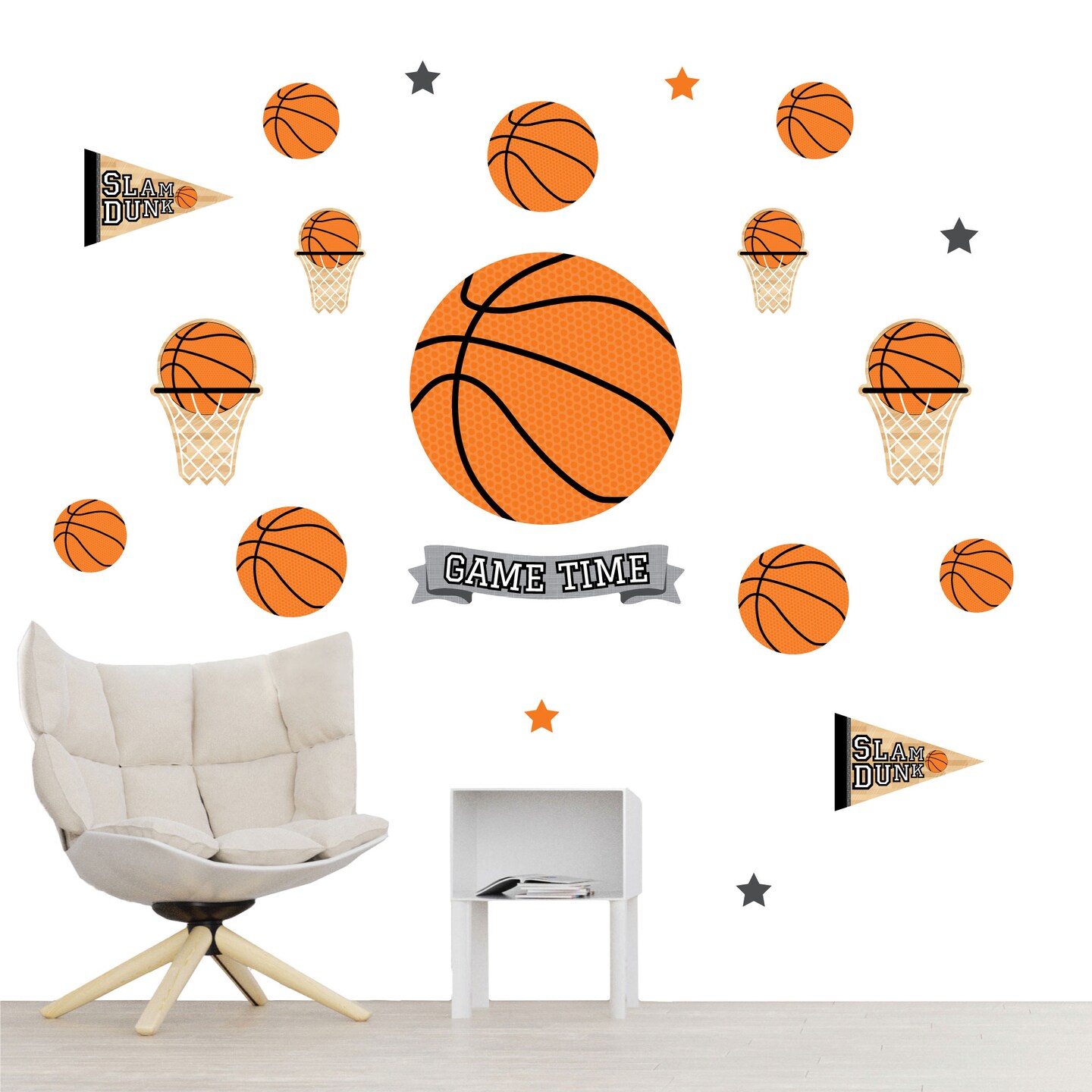 Big Dot of Happiness Nothin’ But Net - Basketball - Peel and Stick Sports Decor Vinyl Wall Art Stickers - Wall Decals - Set of 20