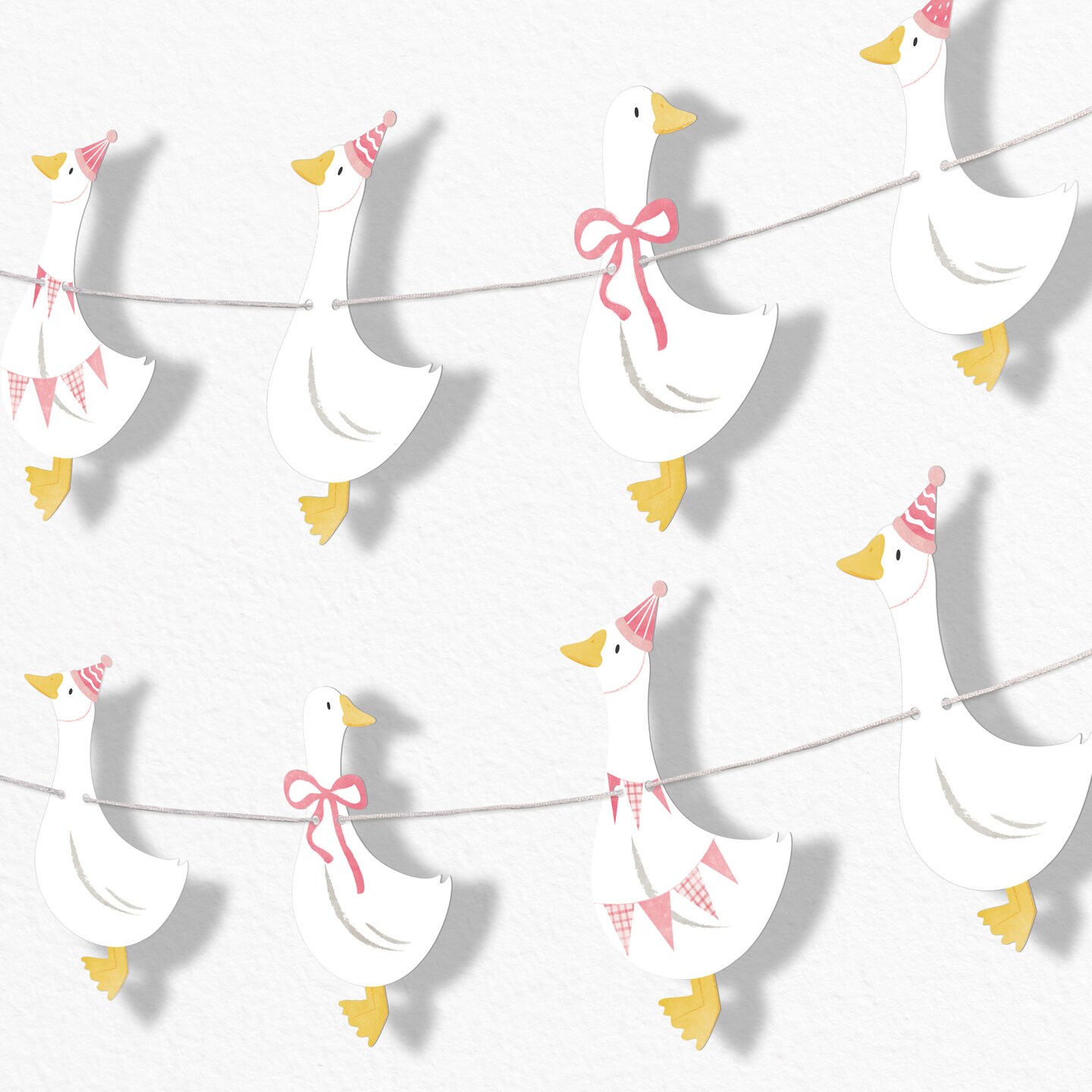 Big Dot of Happiness One Silly Goose Pink Garland Banner, Girl 1st Birthday Decorations Banner Backdrop, 30 Feet of Cord, 15 Double-Sided Goose-Shapes