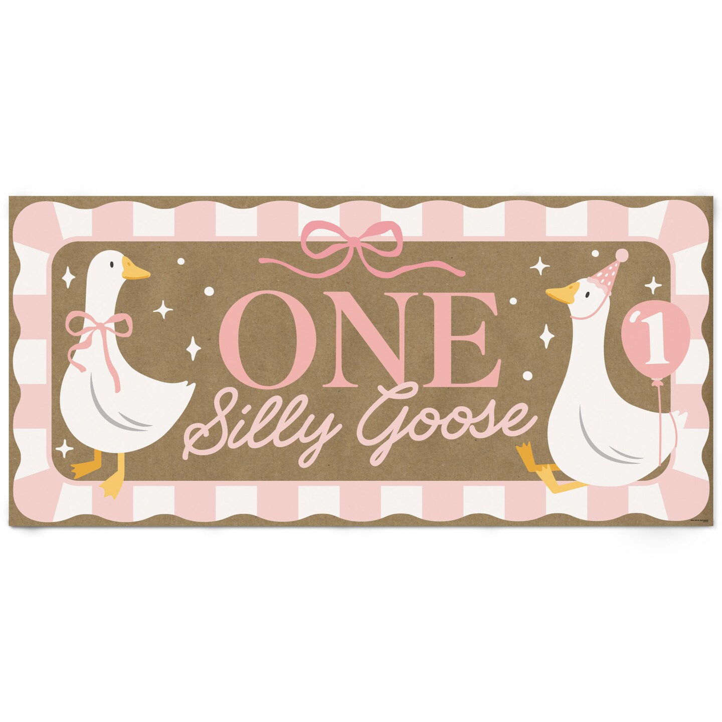 Big Dot of Happiness One Silly Goose Pink Kraft Paper Banner, Girl 1st Birthday Party Banner, Printed Brown Paper Party Sign Decoration – 1 Count