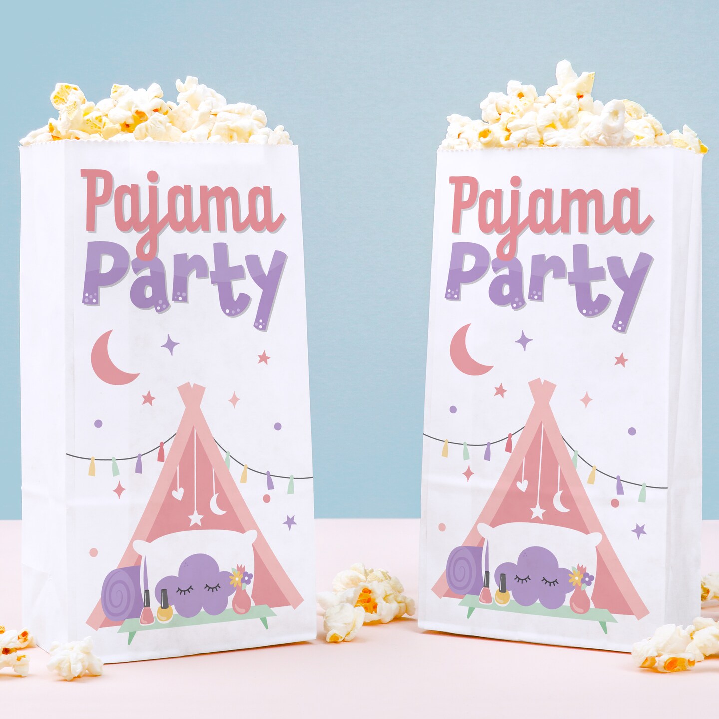 Big Dot of Happiness Pajama Slumber Party Popcorn Bags, Girls Birthday Party Favor Snack Treats, Free-Standing Individual White Paper Bags - 25 Count