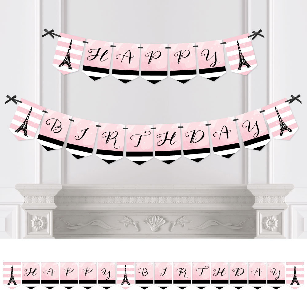 Big Dot of Happiness Paris, Ooh La La - Birthday Party Bunting Banner - Pink Party Decorations - Happy Birthday