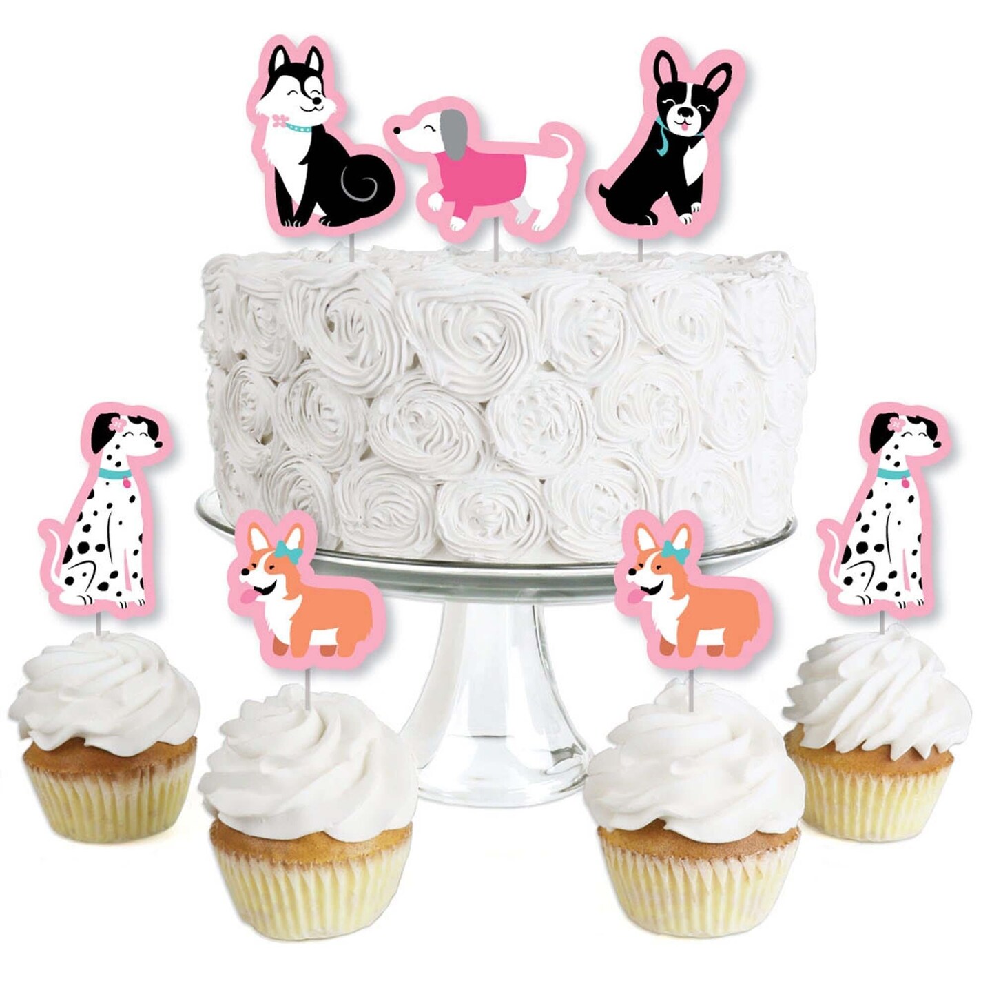 Big Dot of Happiness Pawty Like a Puppy Girl - Dessert Cupcake Toppers - Pink Dog Baby Shower or Birthday Party Clear Treat Picks - Set of 24