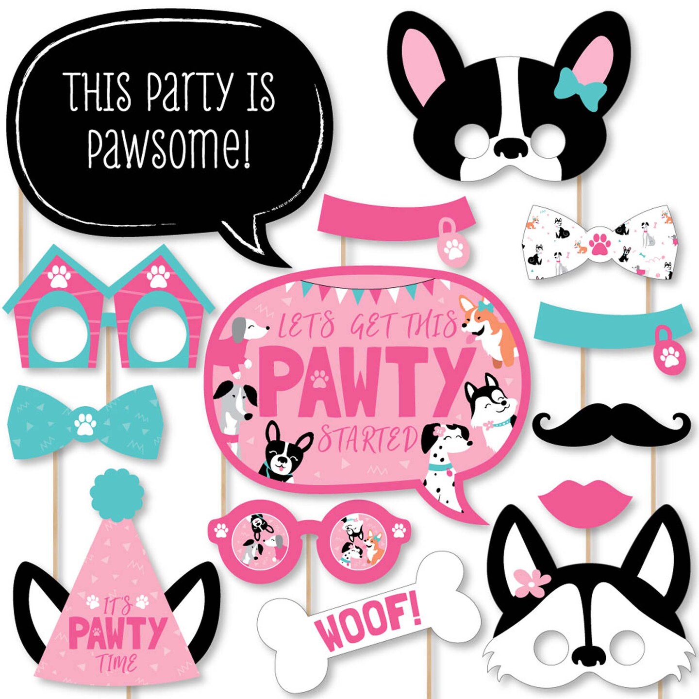 Big Dot of Happiness Pawty Like a Puppy Girl - Pink Dog Baby Shower or Birthday Party Photo Booth Props Kit - 20 Count