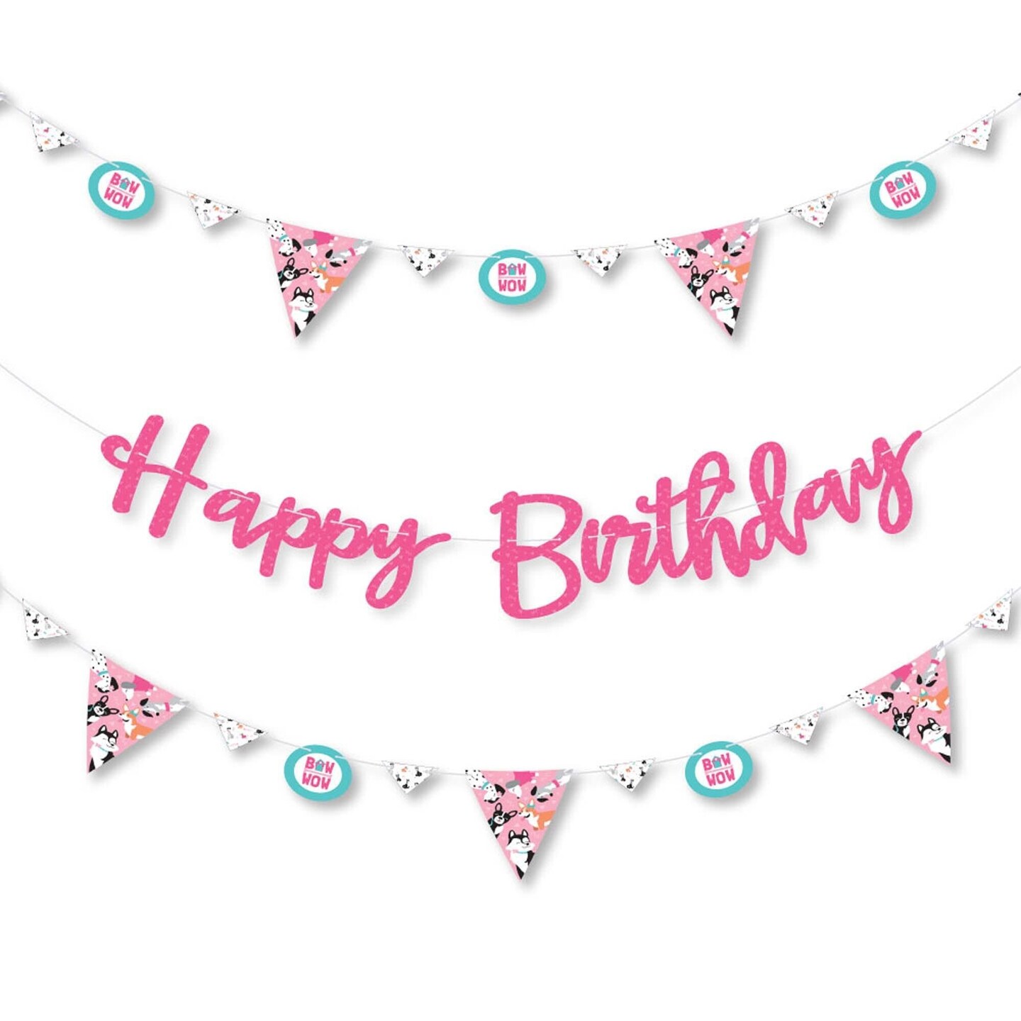 Big Dot of Happiness Pawty Like a Puppy Girl - Pink Dog Birthday Party Letter Banner Decoration - 36 Banner Cutouts and Happy Birthday Banner Letters