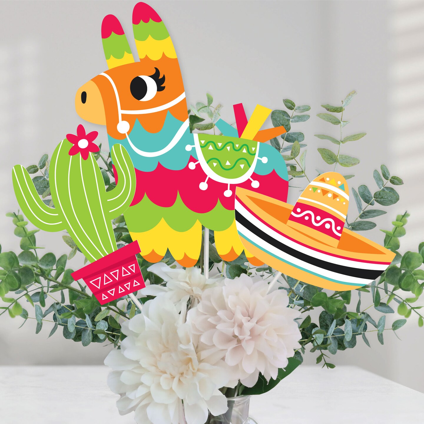 Big Dot of Happiness Pinata Party - Colorful Fiesta Centerpiece Sticks - Table Toppers - Set of 15