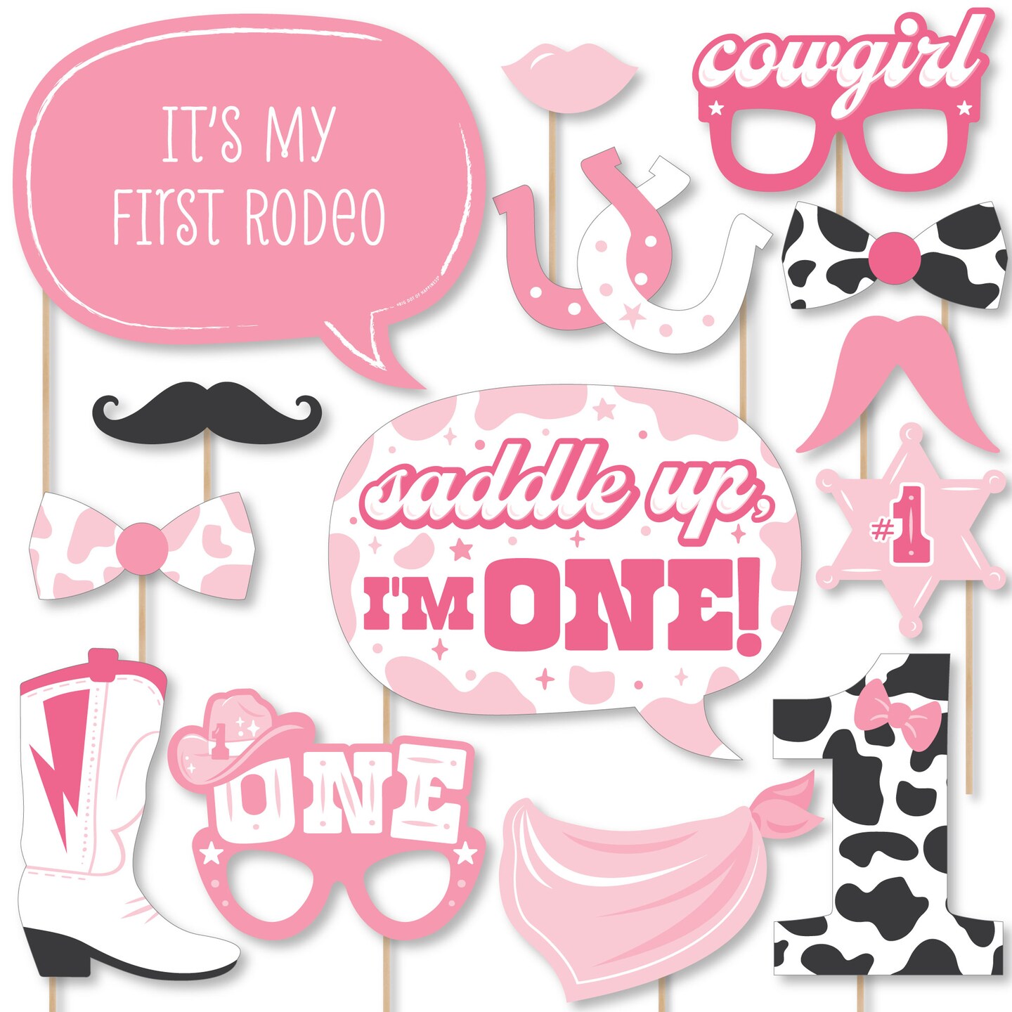 Big Dot of Happiness Pink First Rodeo - Cowgirl 1st Birthday Party Photo Booth Props Kit - 20 Count