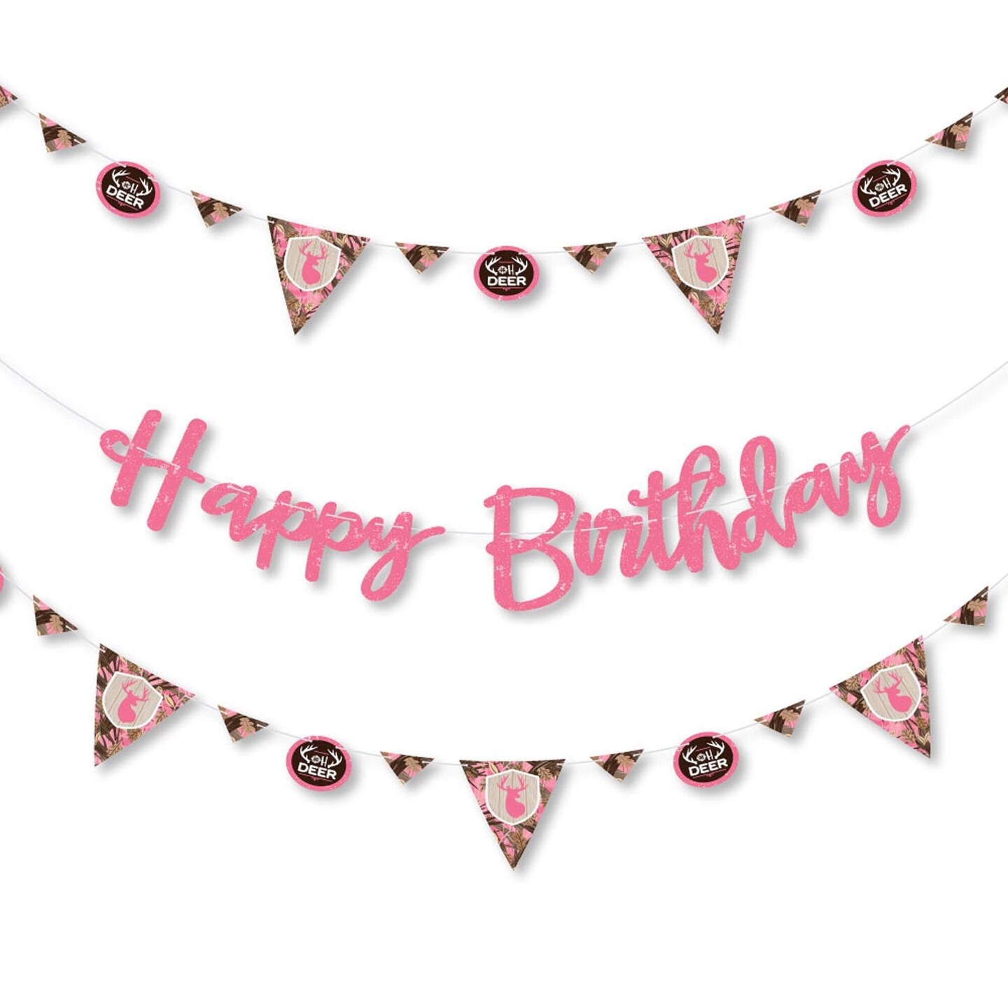 Big Dot of Happiness Pink Gone Hunting - Deer Hunting Girl Camo Birthday Party Letter Banner Decor - 36 Banner Cutouts & Happy Birthday Banner Letters