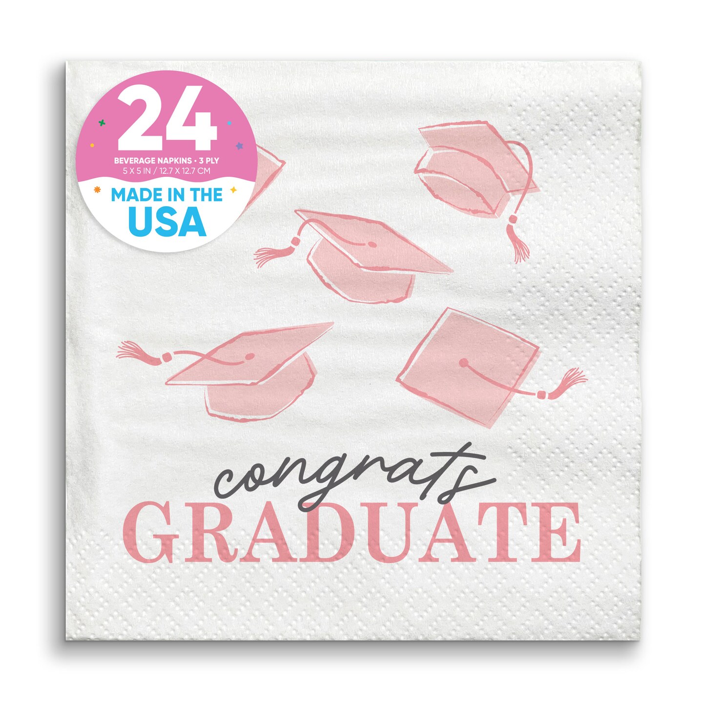 Big Dot of Happiness Pink Graduation Napkins, Congrats Graduate Supplies, Rose Gold Printing on White 3-Ply Paper Beverage Cocktail Napkins - 24 Count
