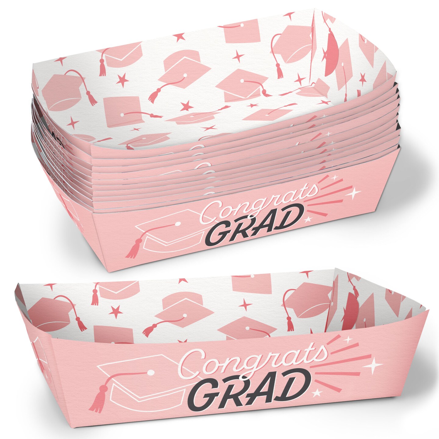 Big Dot of Happiness Pink Graduation Paper Food Trays, Disposable Food Boats for Congrats Grad Party, Double-Sided Paper Meal Holders - 12 Ct