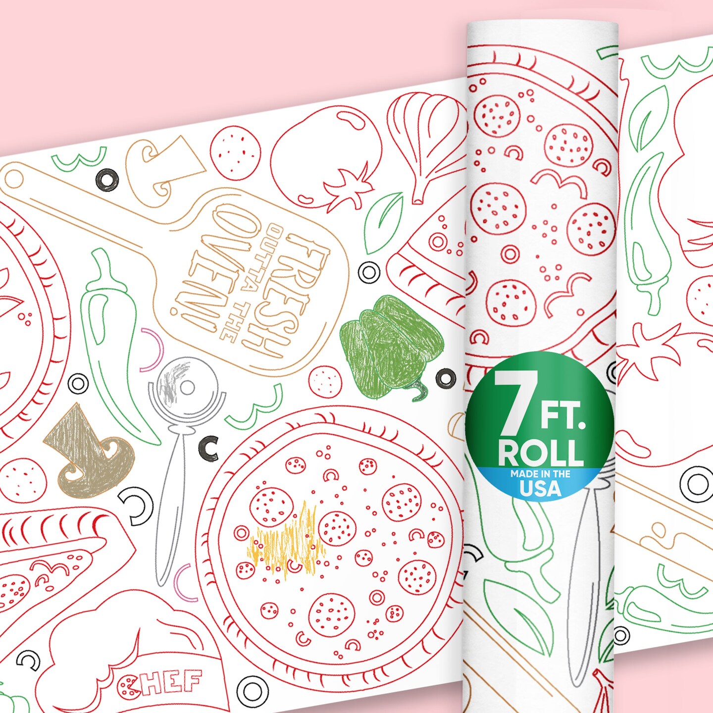 Big Dot of Happiness Pizza Party Coloring Table Runner, 7ft Long Baby Shower or Birthday Craft & Activity Table Runner, Giant Coloring Page - 1 Roll