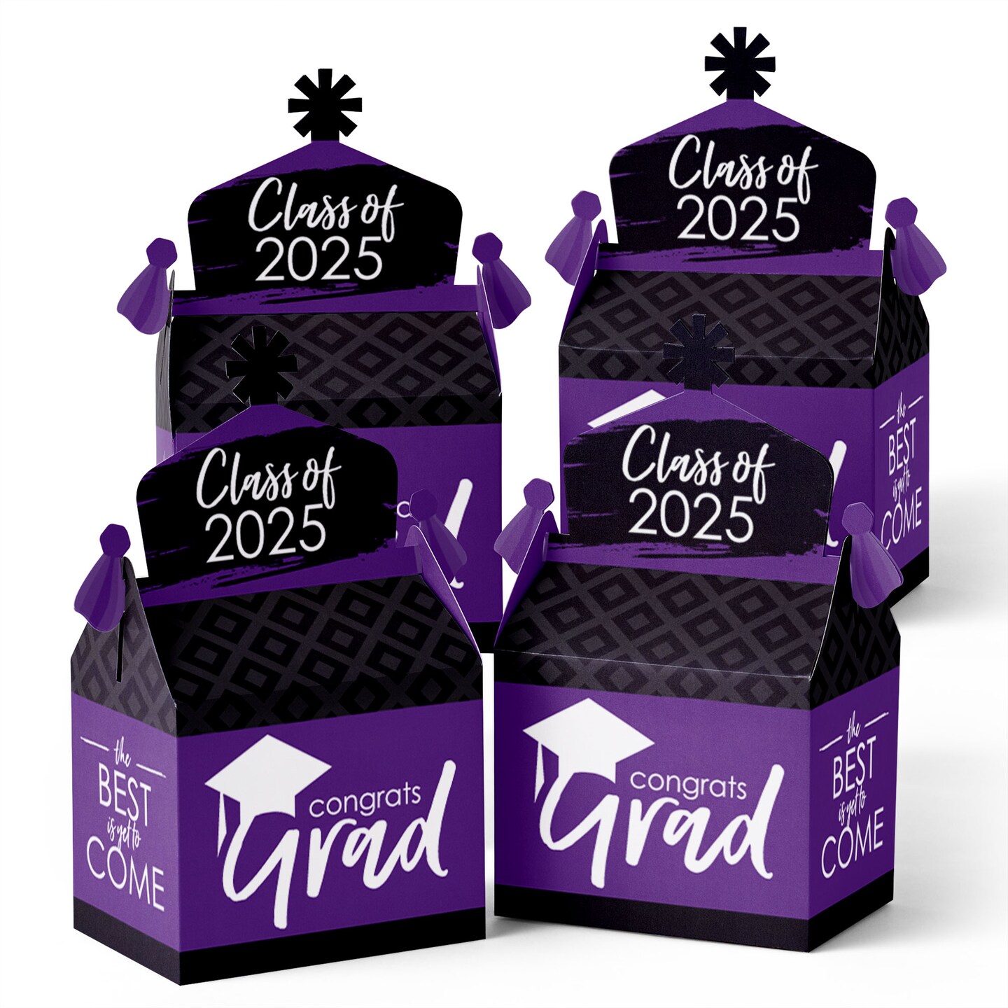 Big Dot of Happiness Purple Grad - Best is Yet to Come - Treat Box Party Favors - 2025 Purple Graduation Party Goodie Gable Boxes - Set of 12