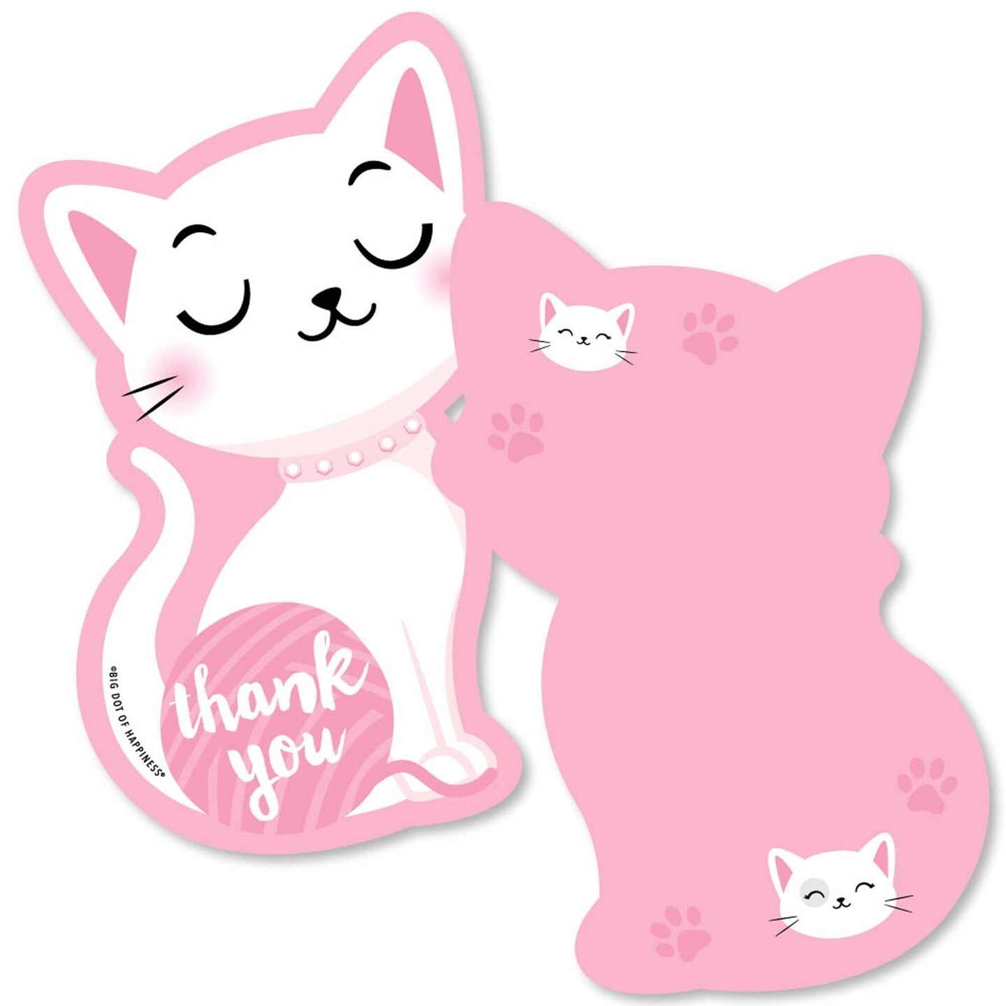 Big Dot of Happiness Purr-fect Kitty Cat - Shaped Thank You Cards - Kitten Baby Shower Birthday Party Thank You Note Cards with Envelopes - Set of 12