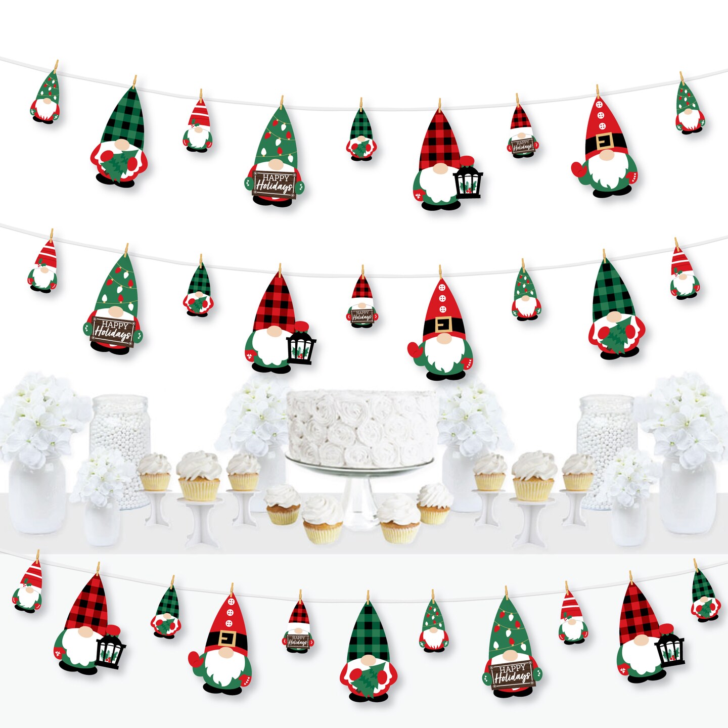 Big Dot of Happiness Red and Green Holiday Gnomes - Christmas Party DIY Decorations - Clothespin Garland Banner - 44 Pieces
