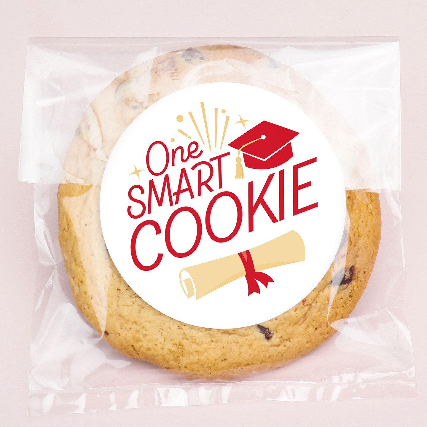 Big Dot of Happiness Red Grad One Smart Cookie Stickers and Clear Cookie Bags, Cellophane Treat Bags 4.25x7 Inches, Graduation Favor Gifts - 25 Count