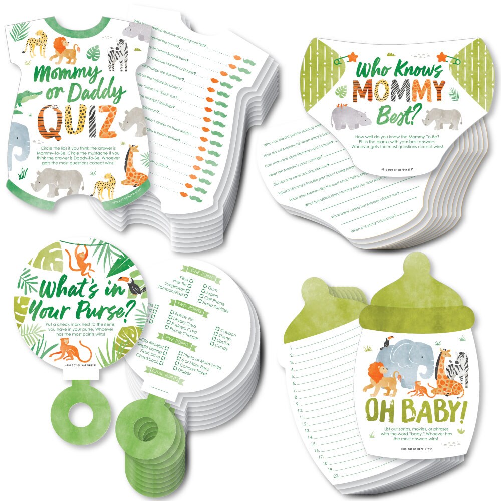 Big Dot of Happiness Safari Animals Baby Shower Game Bundle Pack, 4 Different Jungle Party Activities (10 Cards Each)