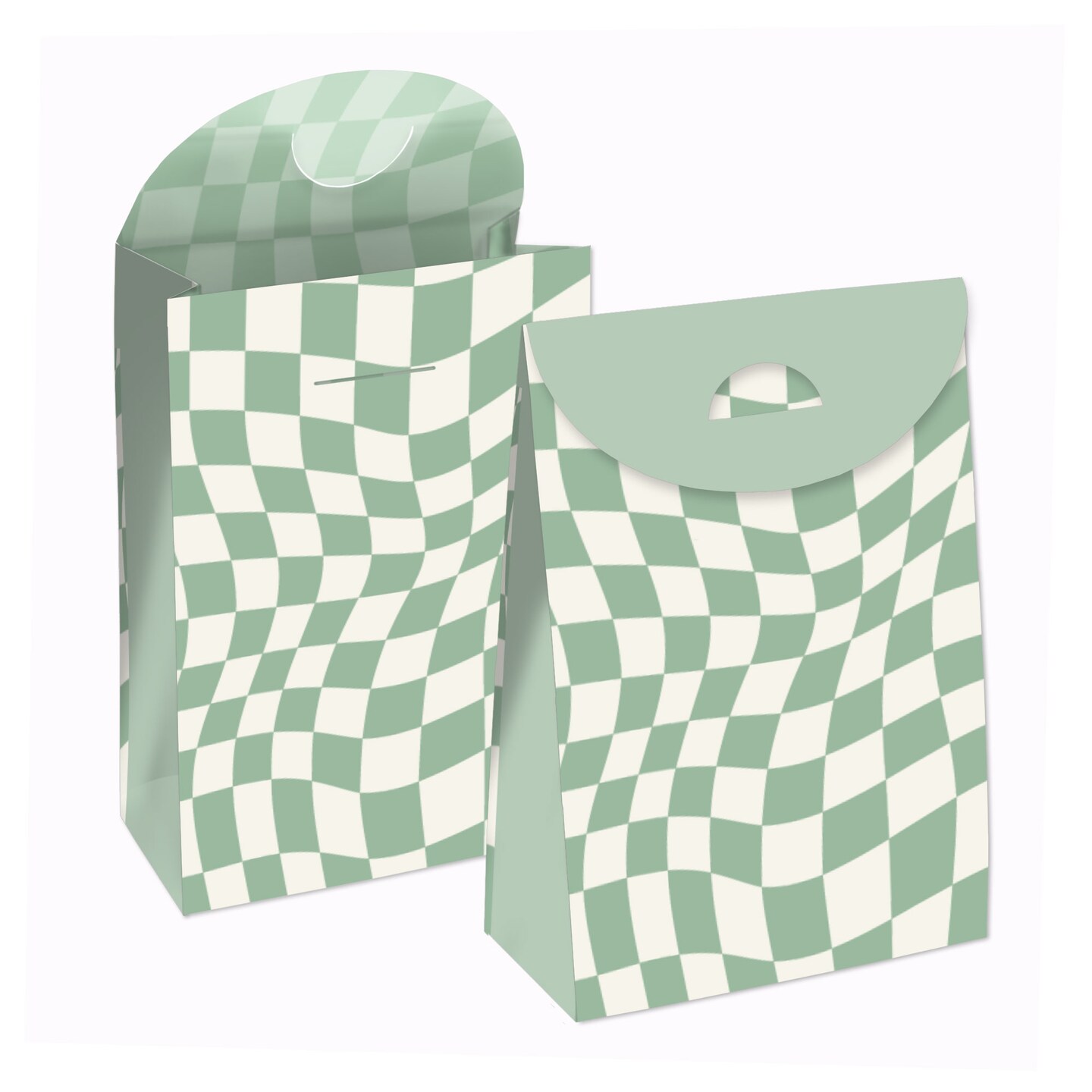 Big Dot of Happiness Sage Green Checkered Party - Gift Favor Bags - Party Goodie Boxes - Set of 12