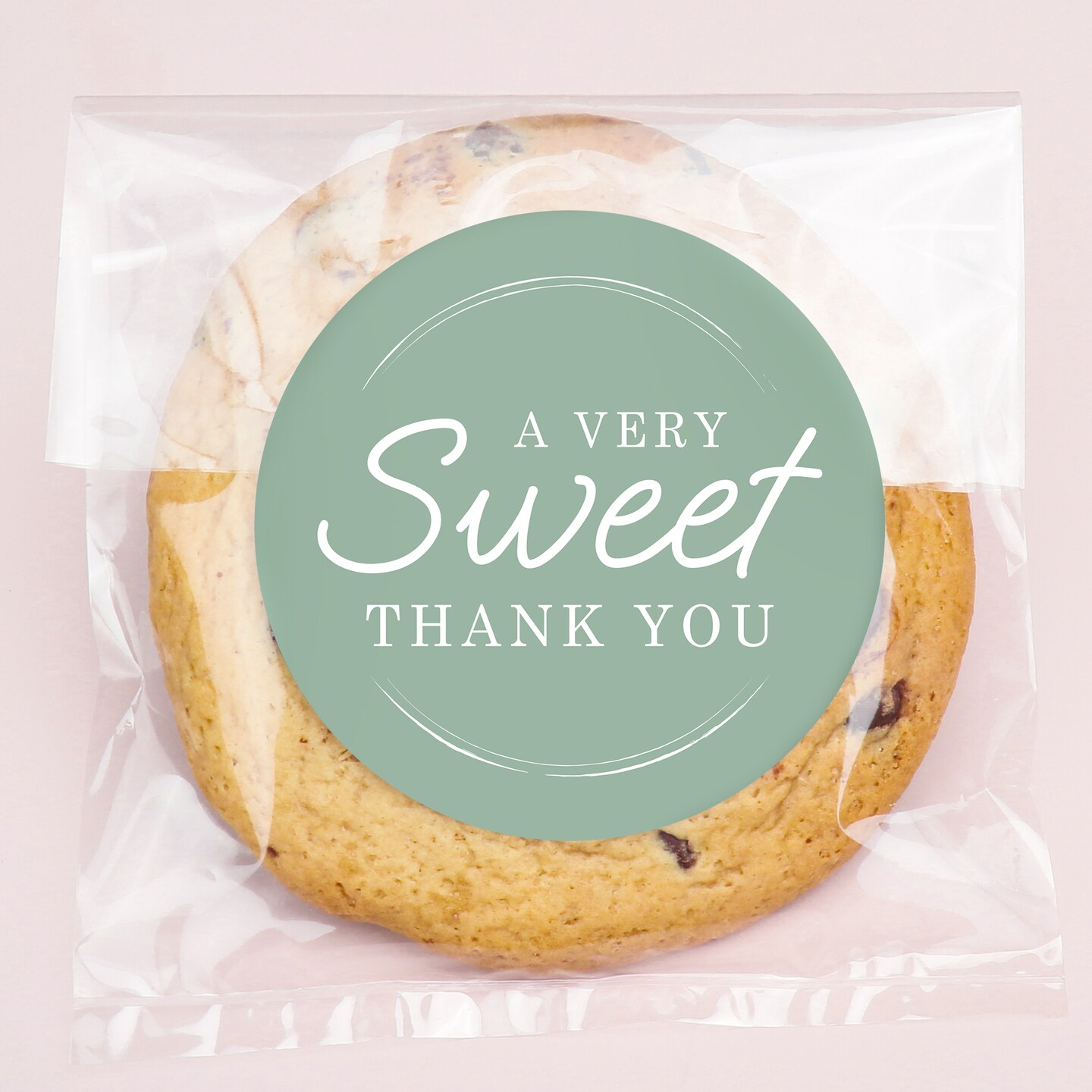 Big Dot of Happiness Sage Green Simple Script Thank You Stickers and Clear Cookie Bags, Cellophane Treat Bags 4.25x7 Inches - 25 Count
