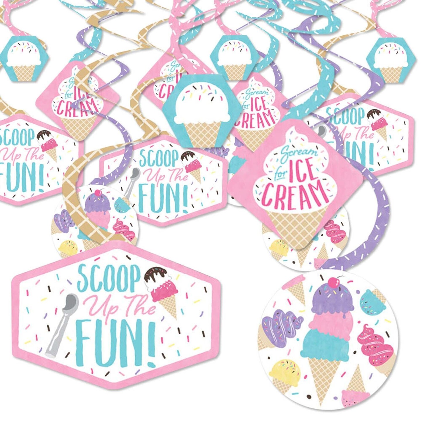 Big Dot of Happiness Scoop Up the Fun - Ice Cream - Sprinkles Party Hanging Decor - Party Decoration Swirls - Set of 40