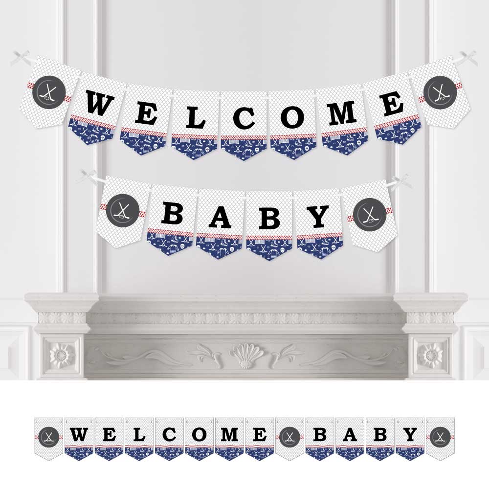 Big Dot of Happiness Shoots and Scores - Hockey - Baby Shower Bunting Banner - Sports Party Decorations - Welcome Baby