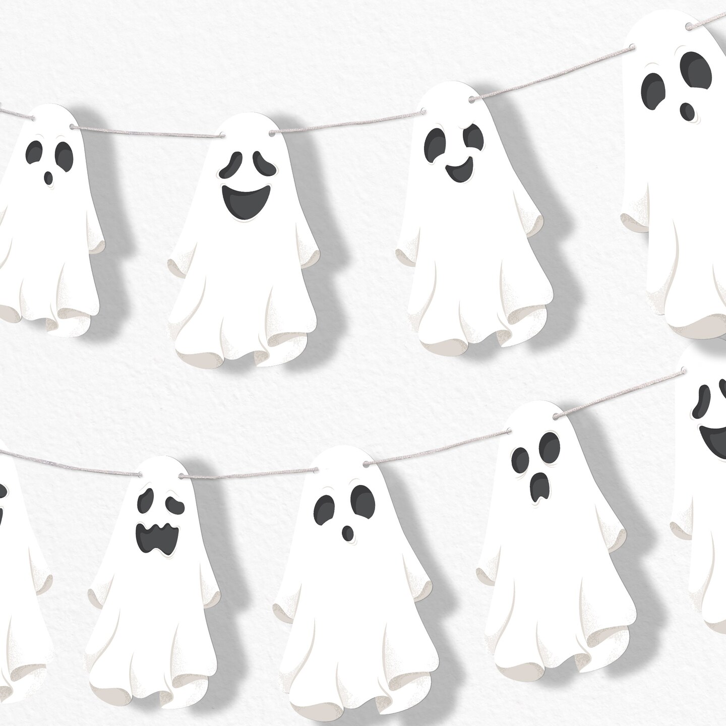 Big Dot of Happiness Spooky Ghost Garland Banner, Halloween Party Decorations Backdrop, 30 Feet of Cord, 15 Paper Ghost Shapes