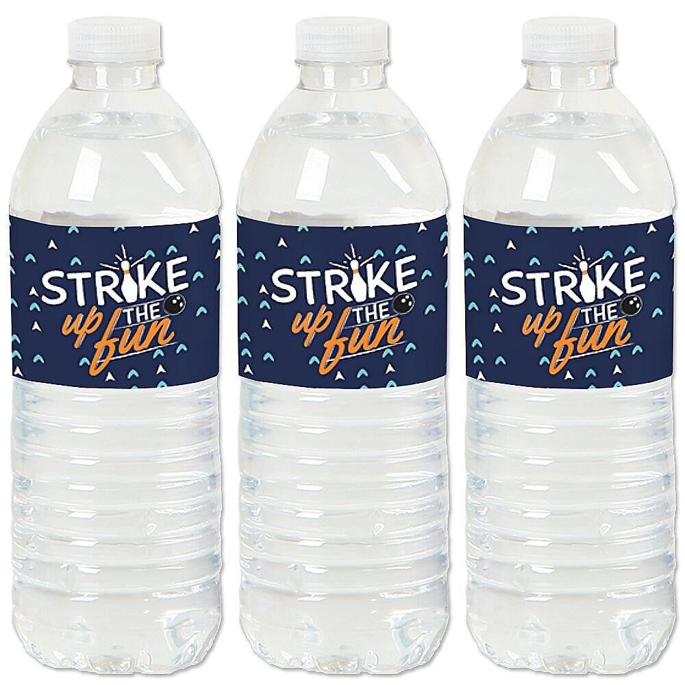 Big Dot of Happiness Strike Up the Fun - Bowling - Birthday Party or Baby Shower Water Bottle Sticker Labels - Set of 20