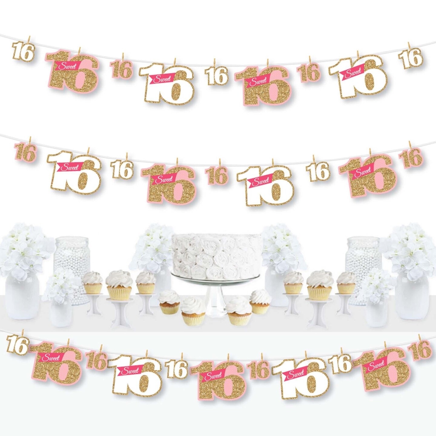 Big Dot of Happiness Sweet 16 - 16th Birthday Party DIY Decorations - Clothespin Garland Banner - 44 Pieces
