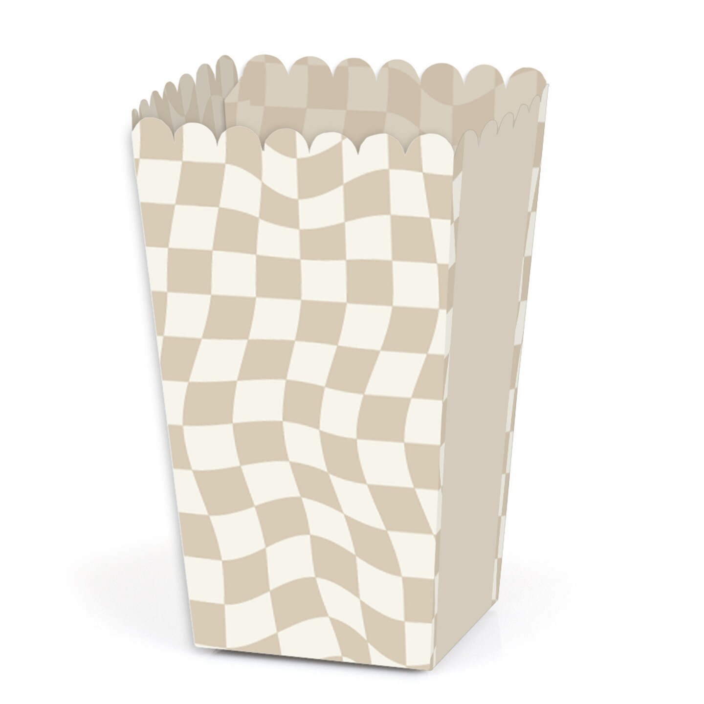 Big Dot of Happiness Tan Checkered Party - Favor Popcorn Treat Boxes - Set of 12