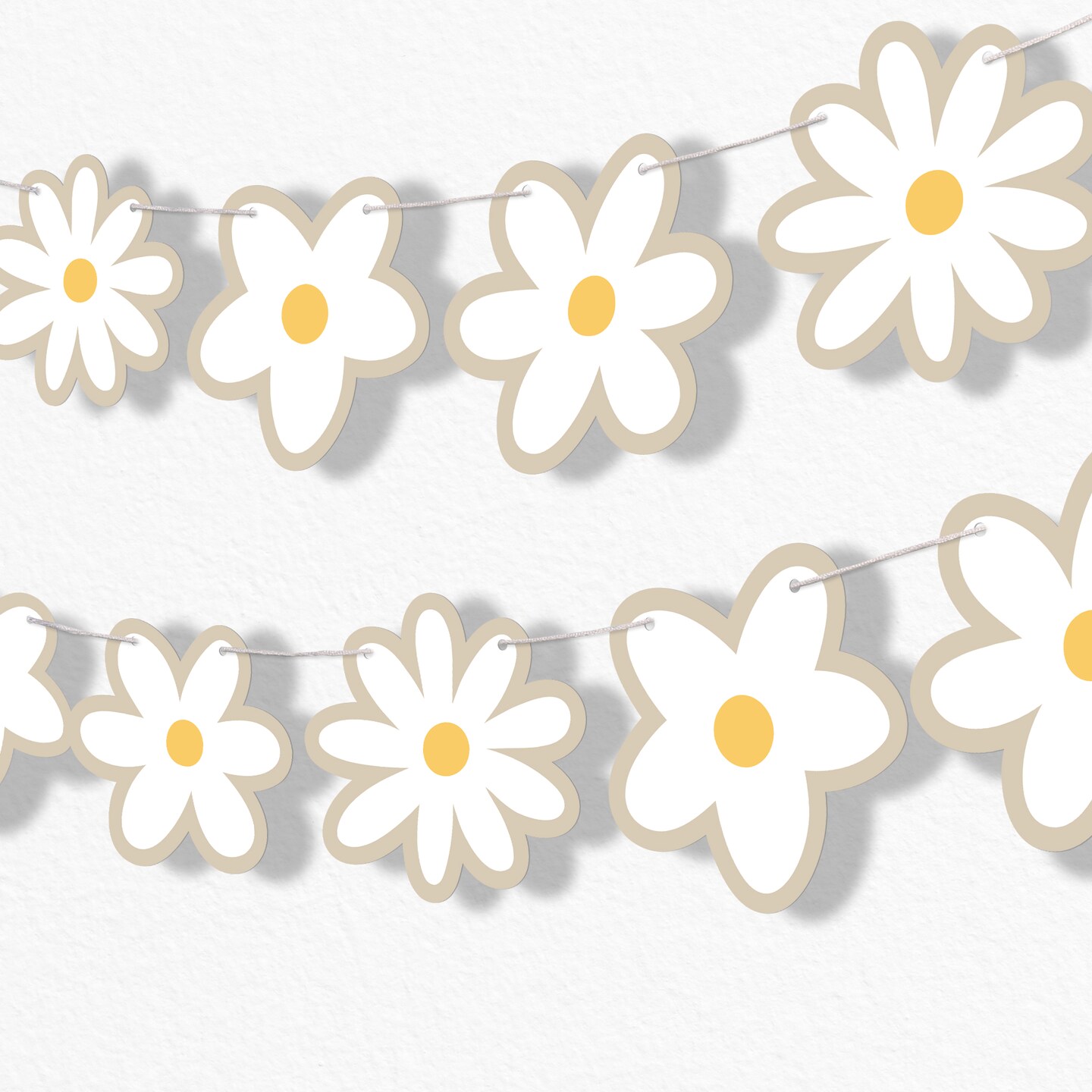 Big Dot of Happiness Tan Daisy Flowers Garland Banner, Boho Hanging Decorations, Groovy Floral Party Banner, 30 Feet of Cord, 15 Double-Sided Daisies