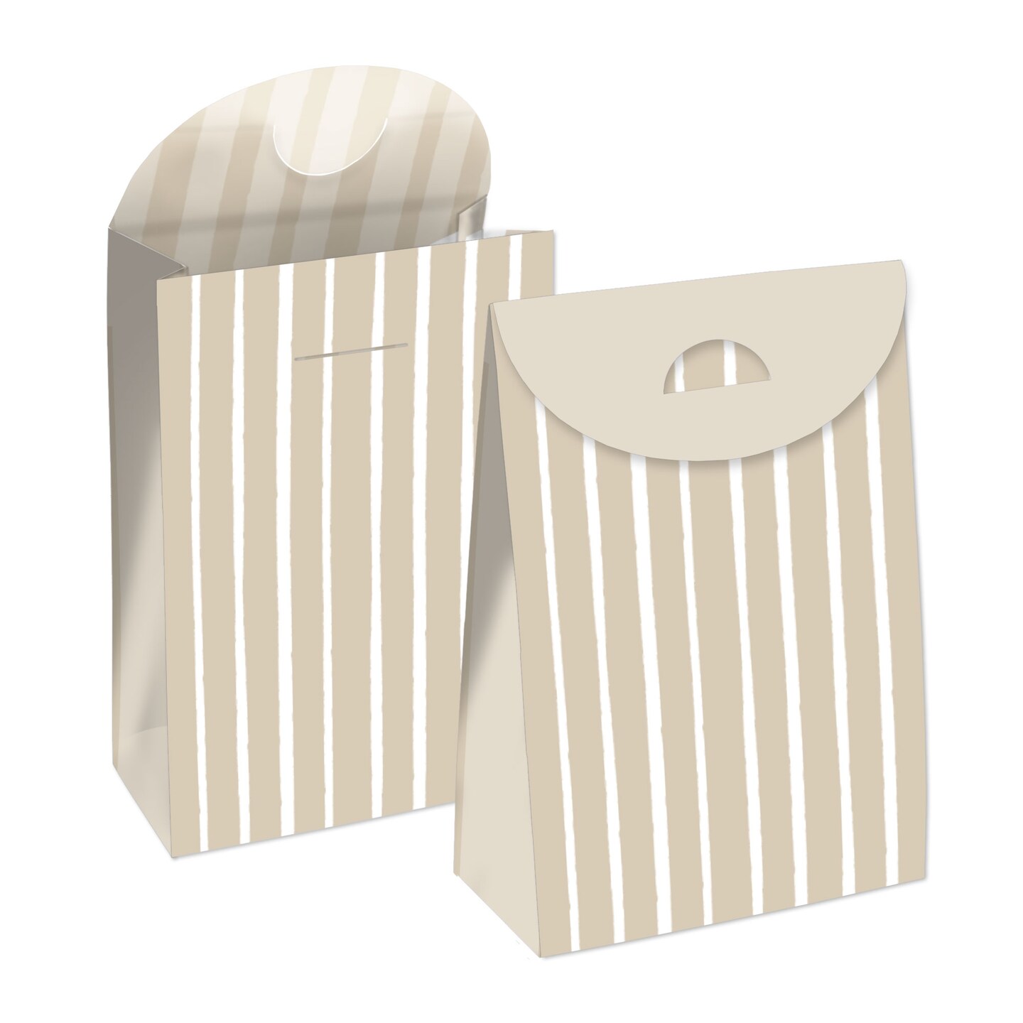 Big Dot of Happiness Tan Stripes - Simple Gift Favor Bags - Party Goodie Boxes - Set of 12