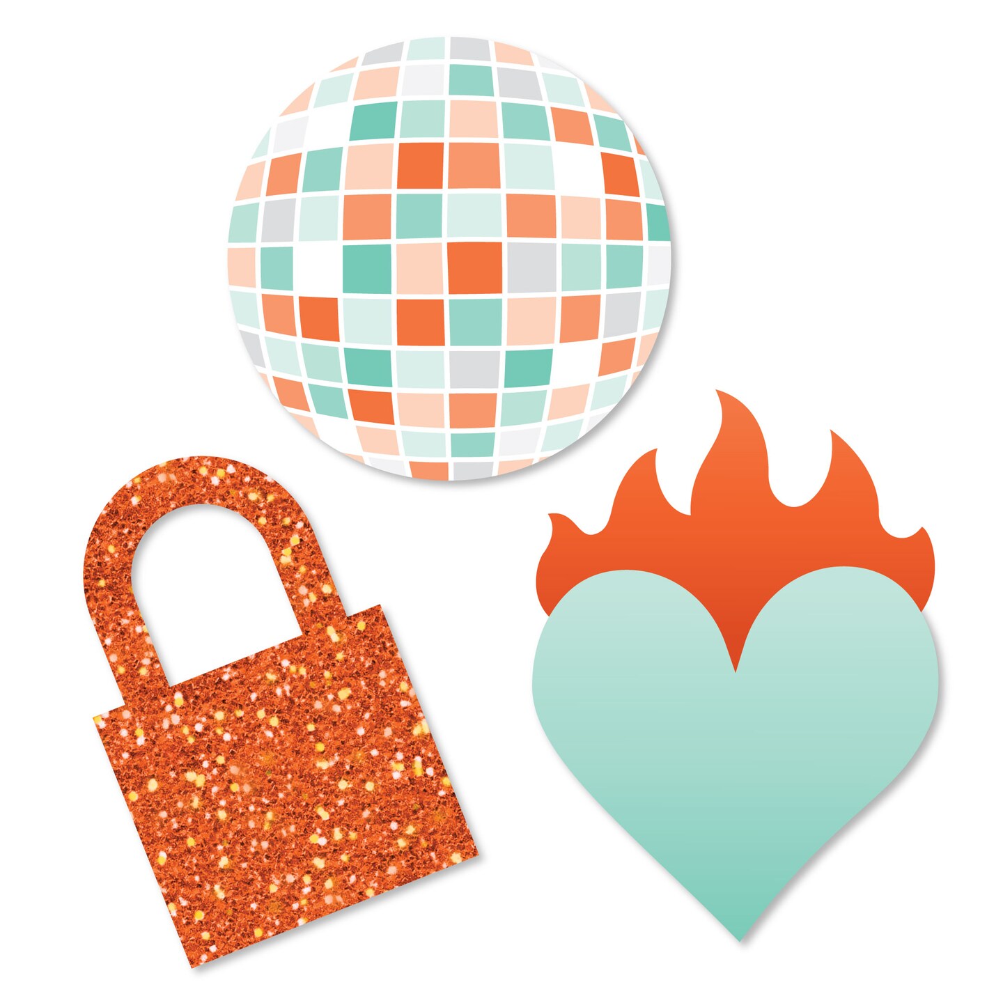Big Dot of Happiness The Life of a Party Small Cutouts, Orange & Green Showgirl Era Birthday or Bachelorette Decor, Mini DIY Paper Cut-Outs - 24 Count