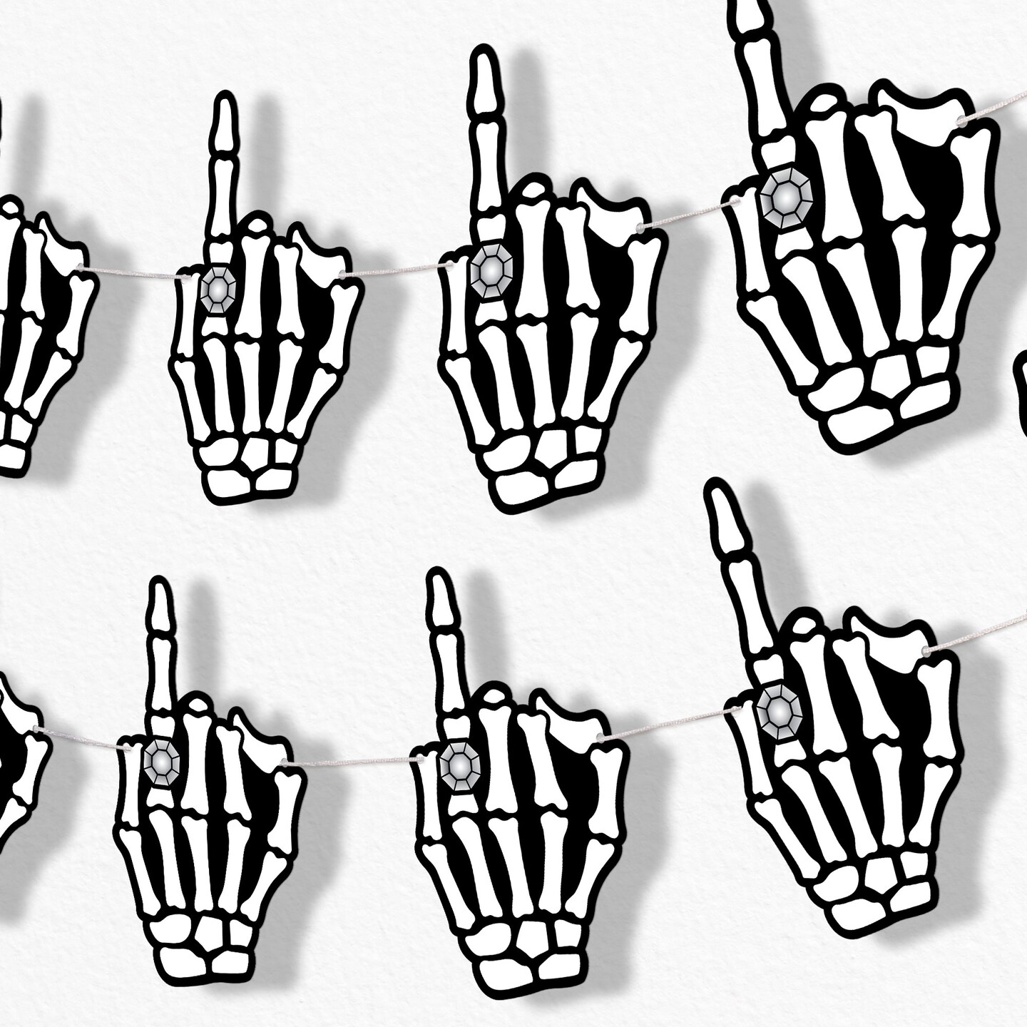 Big Dot of Happiness Til Death Do Us Party Garland Banner, Bride or Die Goth Bridal Decor, 30 Ft of Cord 15 Double-Sided Skeleton Engagement Hands