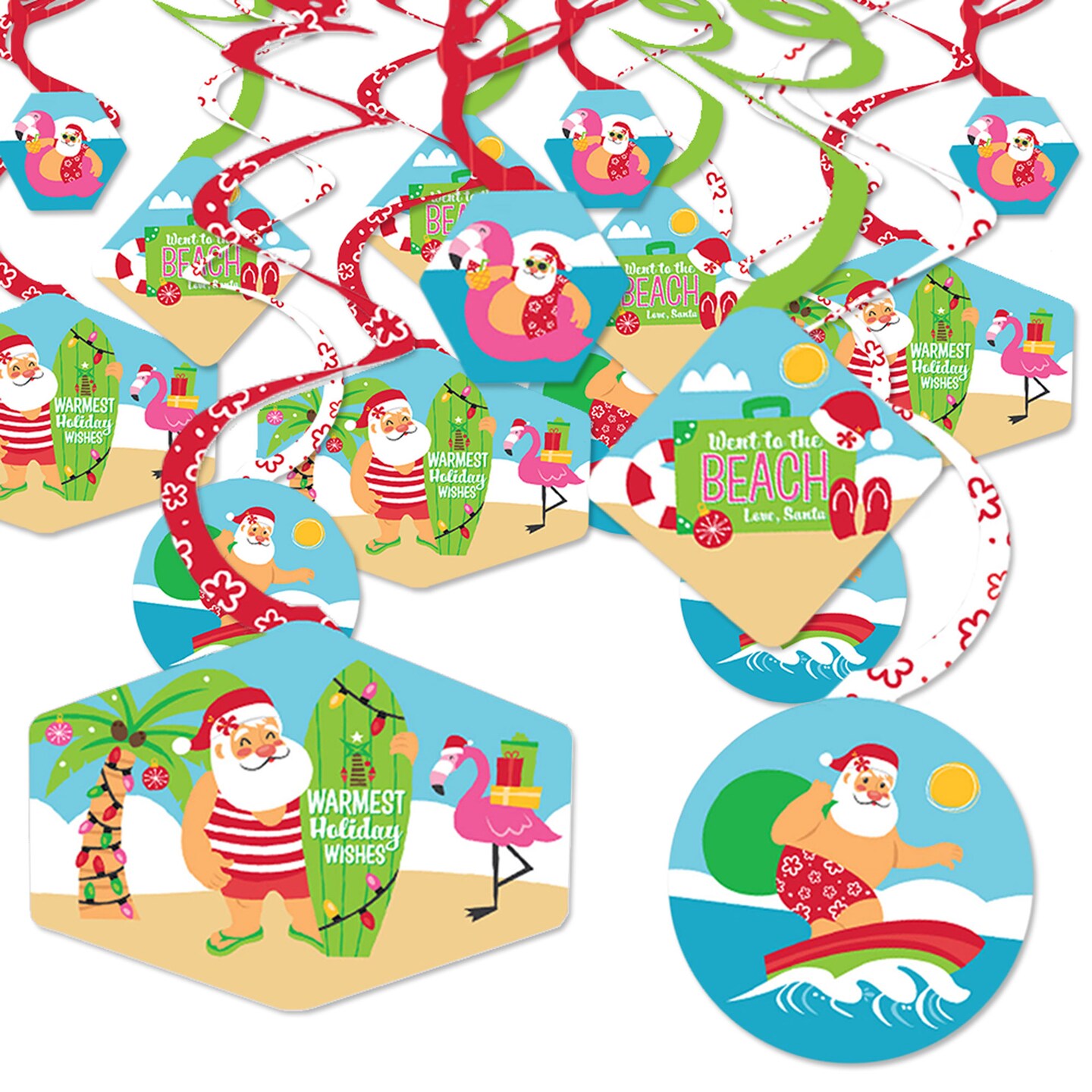 Big Dot of Happiness Tropical Christmas - Beach Santa Holiday Party Hanging Decor - Party Decoration Swirls - Set of 40