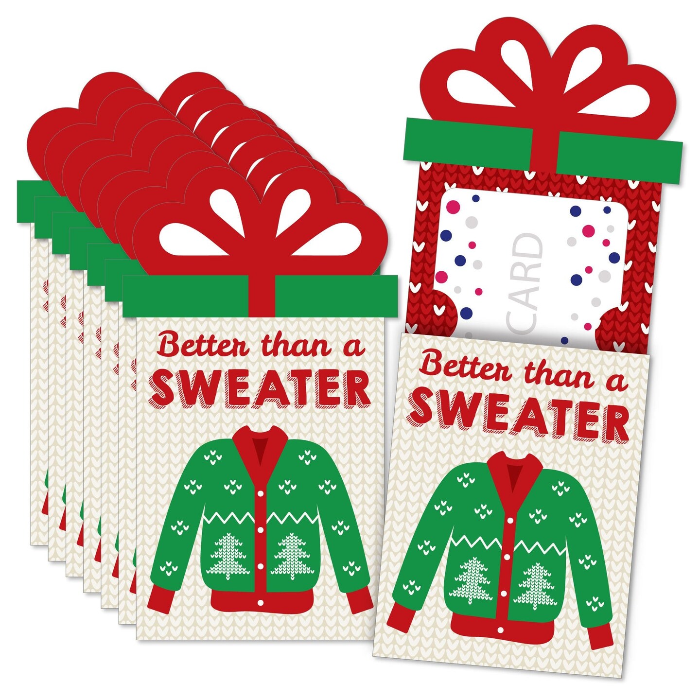 Big Dot of Happiness Ugly Sweater - Holiday and Christmas Party Money and Gift Card Sleeves - Nifty Gifty Card Holders - 8 Ct