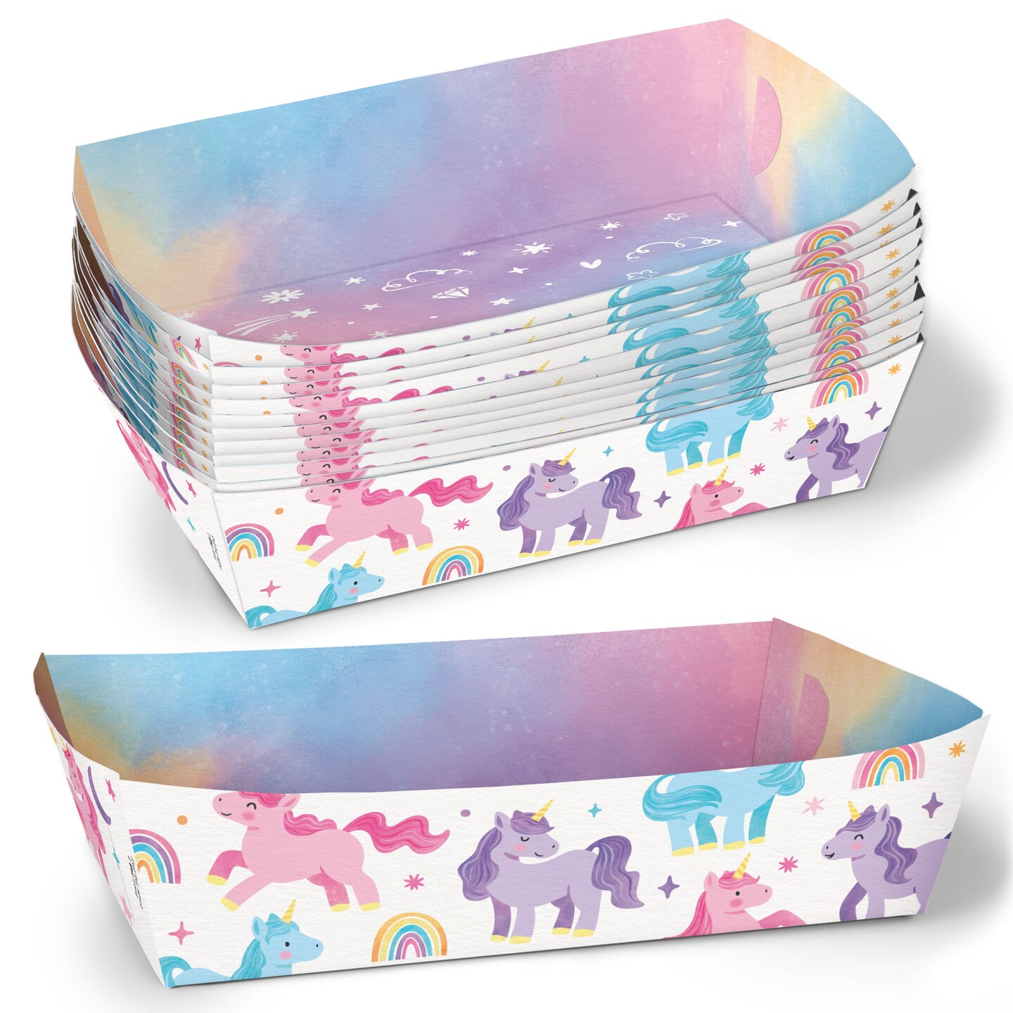 Big Dot of Happiness Unicorn Party Paper Food Trays, Disposable Food Boats for Rainbow Unicorn Birthday, Double-Sided Paper Meal Holders - 12 Ct