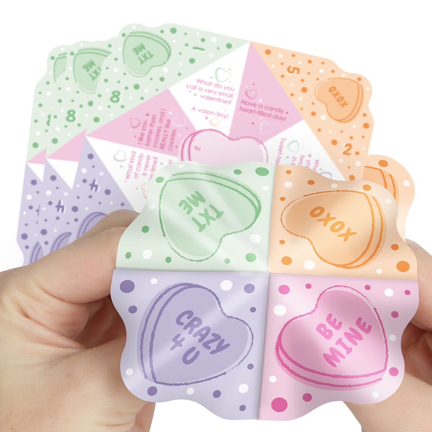 Big Dot of Happiness Valentine Hearts Fortune Teller Cootie Catcher Game, Pastel Classroom Exchange Party Favor Jokes for Kids Fortune Tellers - 12 ct