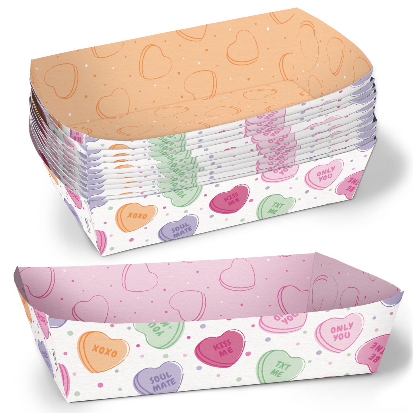 Big Dot of Happiness Valentine Hearts Paper Food Trays, Disposable Food Boats for Pastel Galentine's & Valentine's Double-Sided Meal Holders - 12 Ct